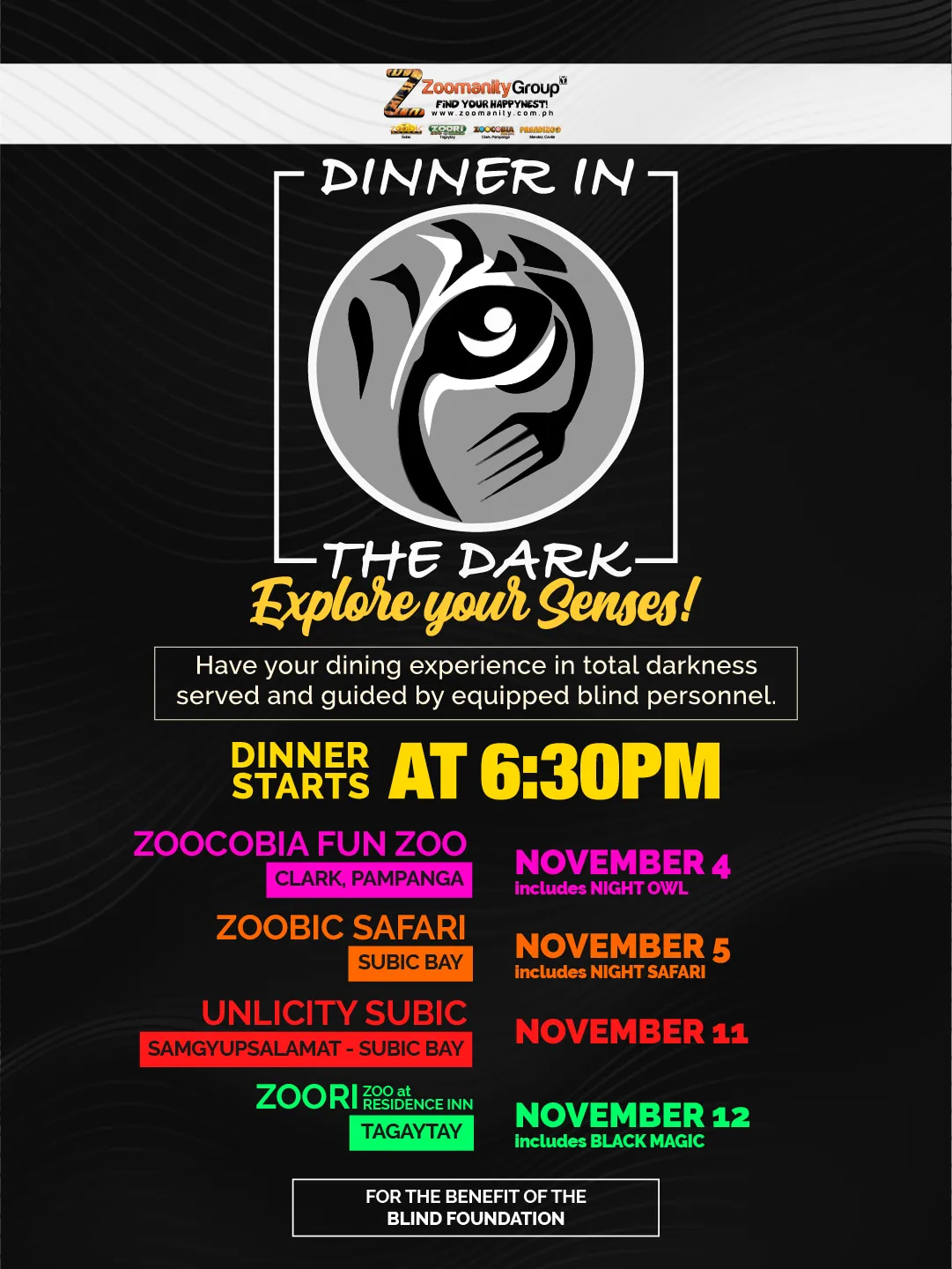 通过这种在黑暗中用餐的体验来探索您的感官! 2022 年 11 月 12 日发生在 Zoori