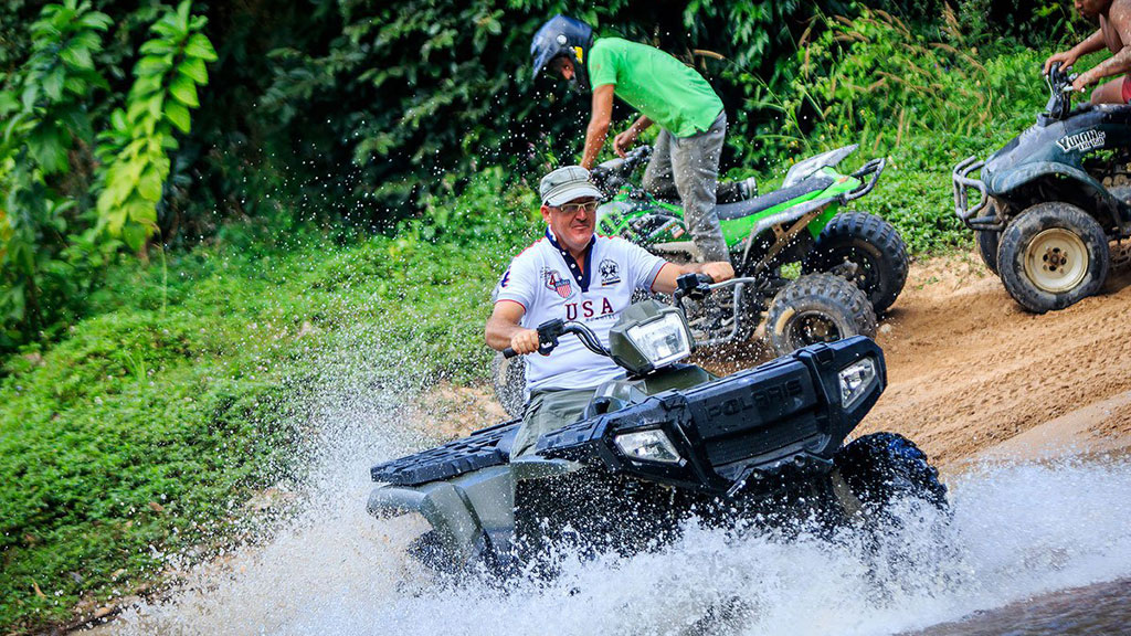 体验惊心动魄的全地形车穿越不同地形和水花的旅程。