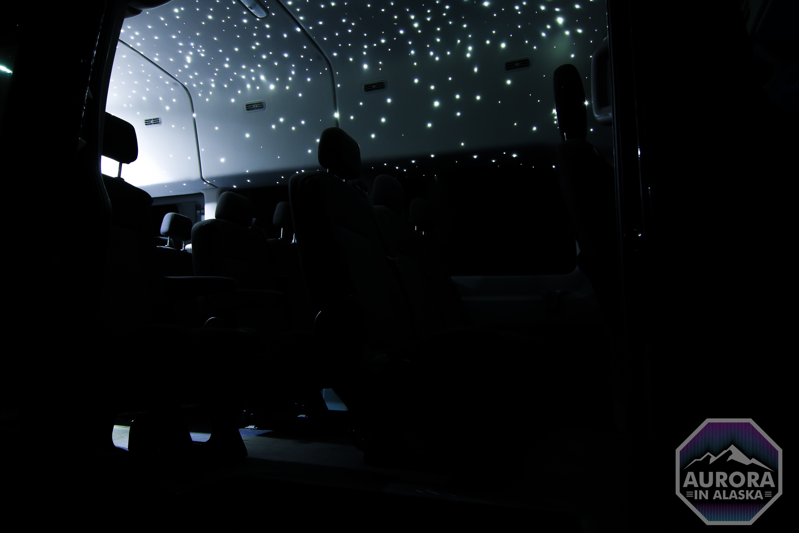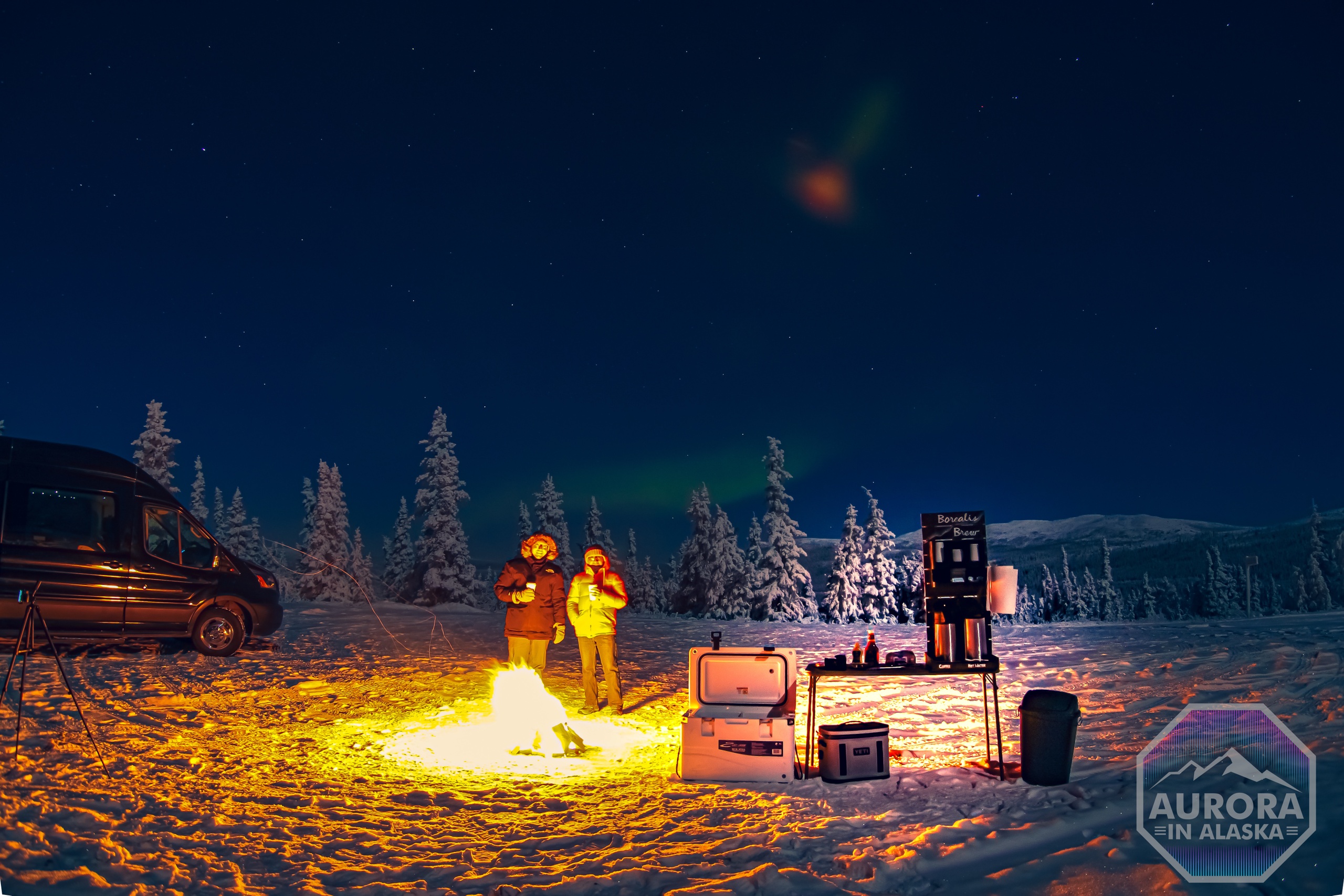 我们的 VIP 面包车在耀眼的北极光下,度过一个奢华和自然奇观的夜晚