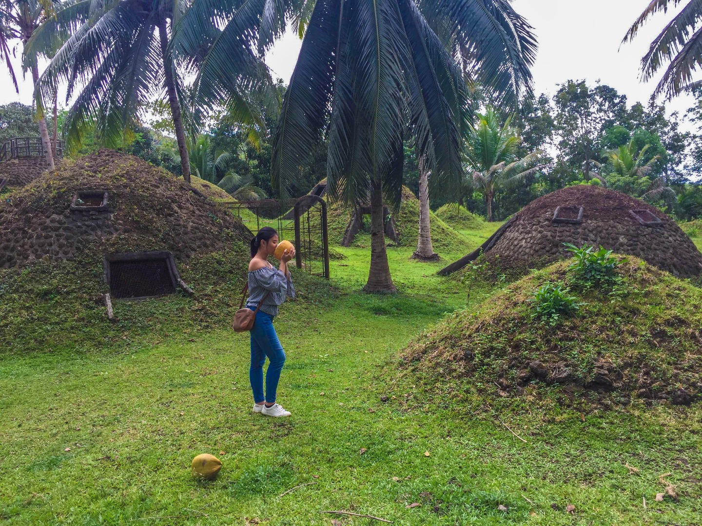 在卡门巧克力山的完美复制品前拍照