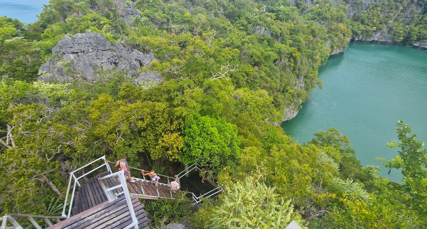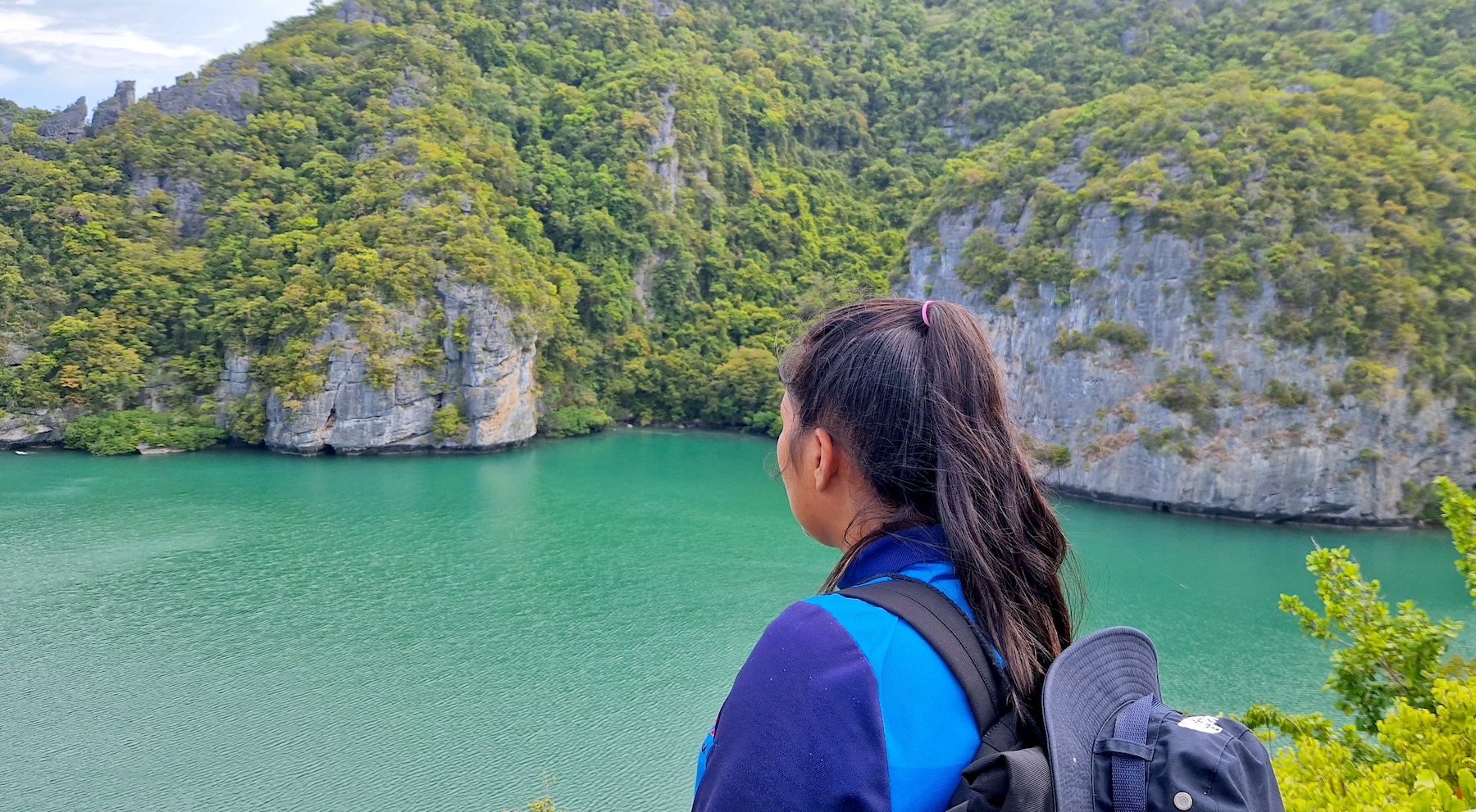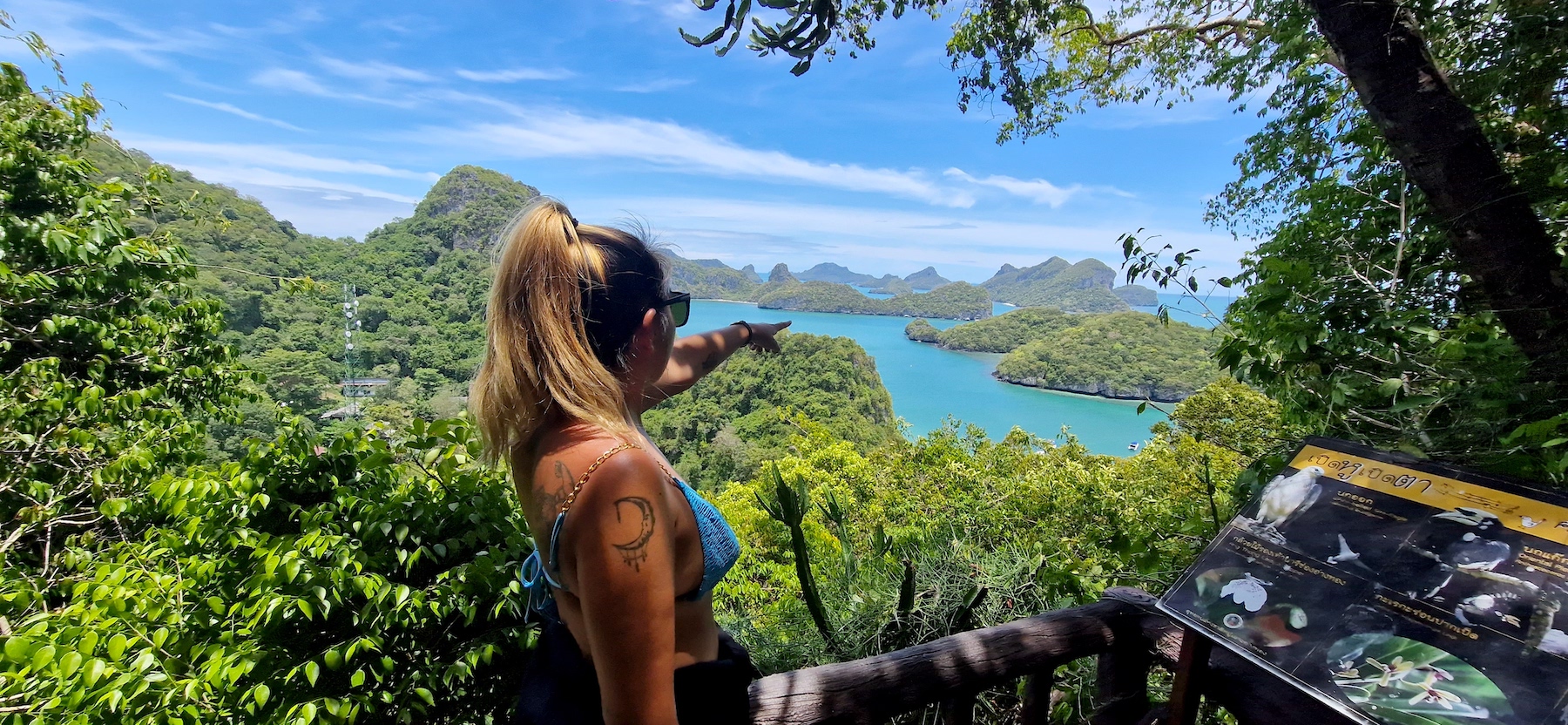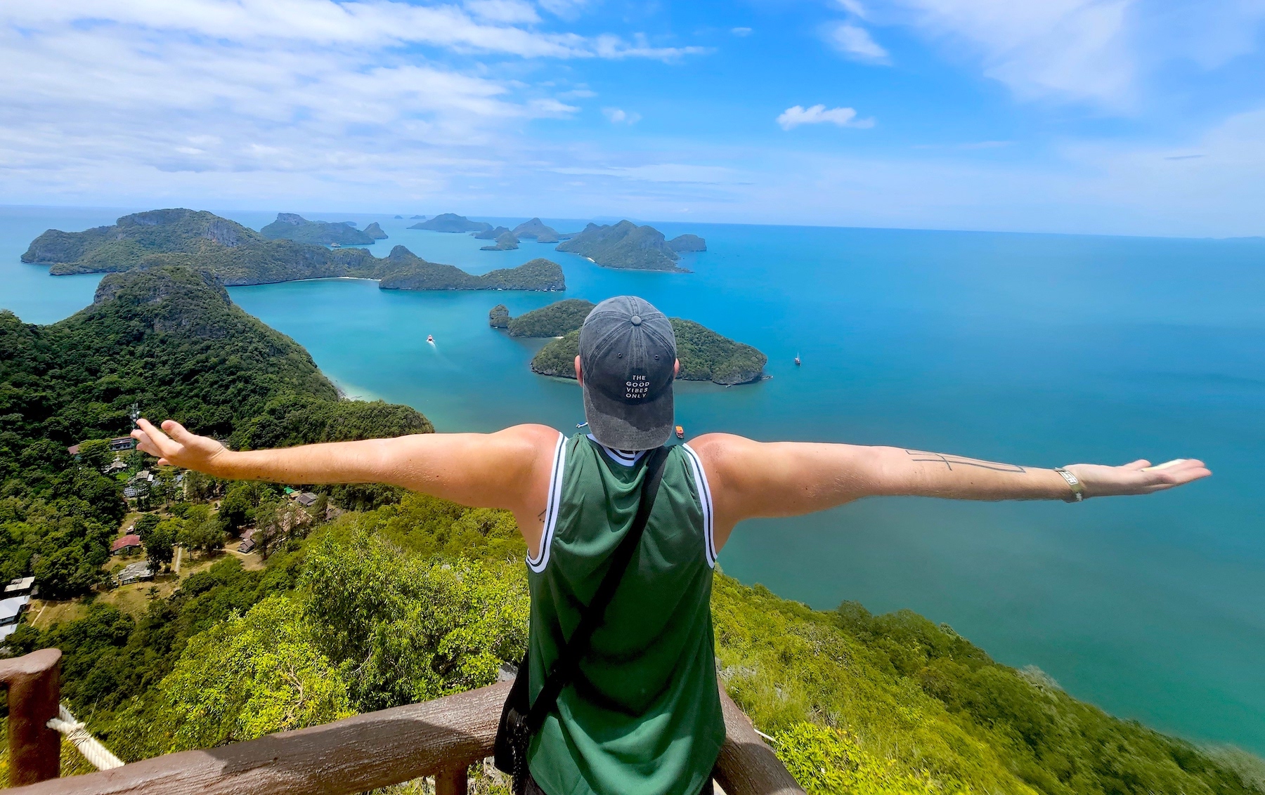 对于勇敢的人来说,可以徒步前往泰国最令人难以置信的观景台之一,俯瞰安通国家海洋公园的 42 个岛屿。