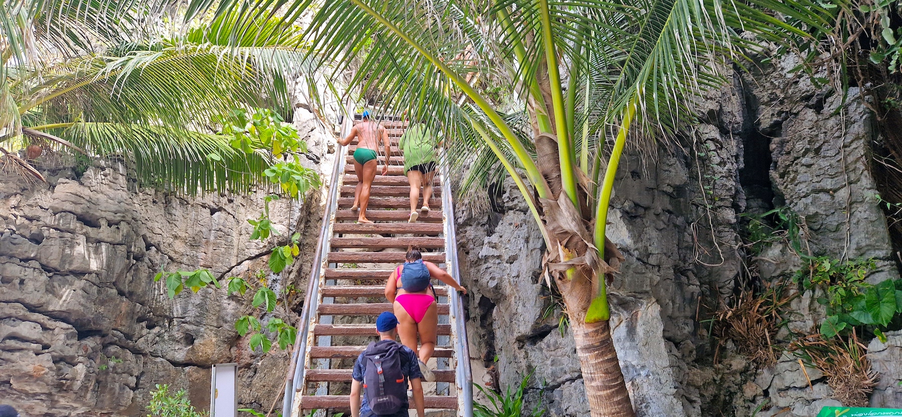 第一站,我们将在一个完美的地点**浮潜**,这里拥有丰富多彩的鱼类和充满活力的珊瑚礁,毗邻雄伟的石灰岩悬崖。