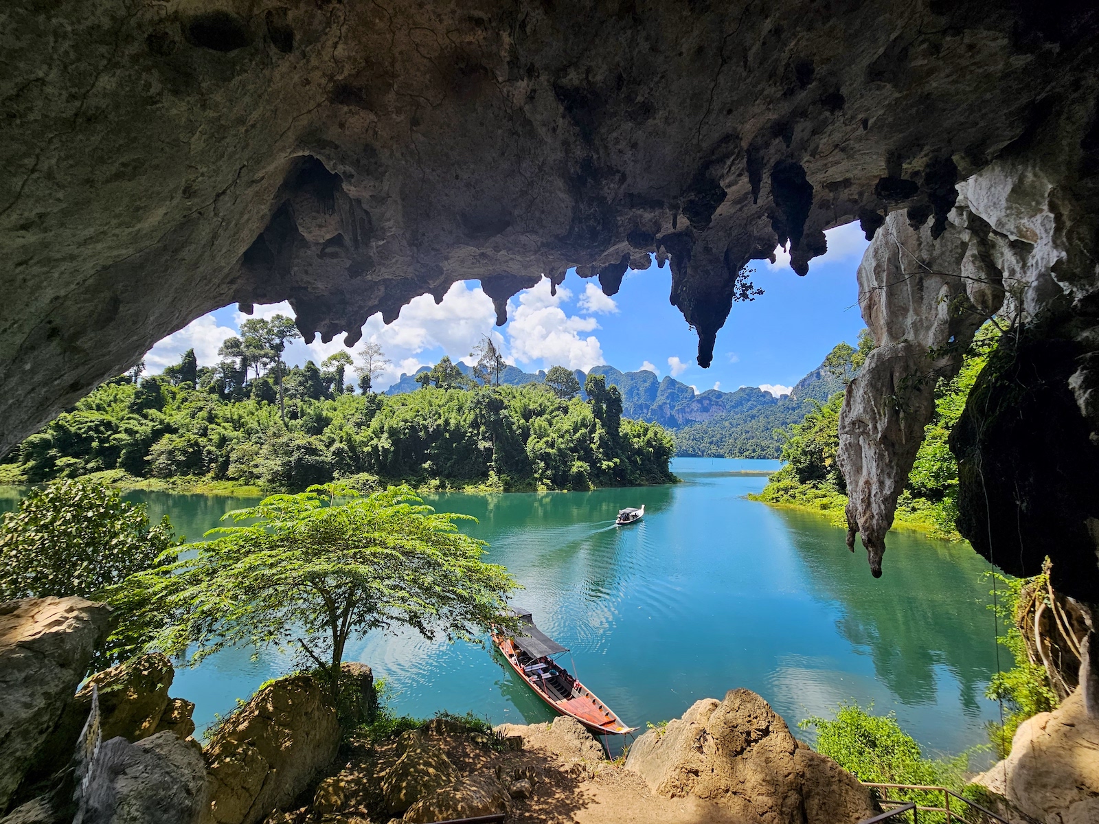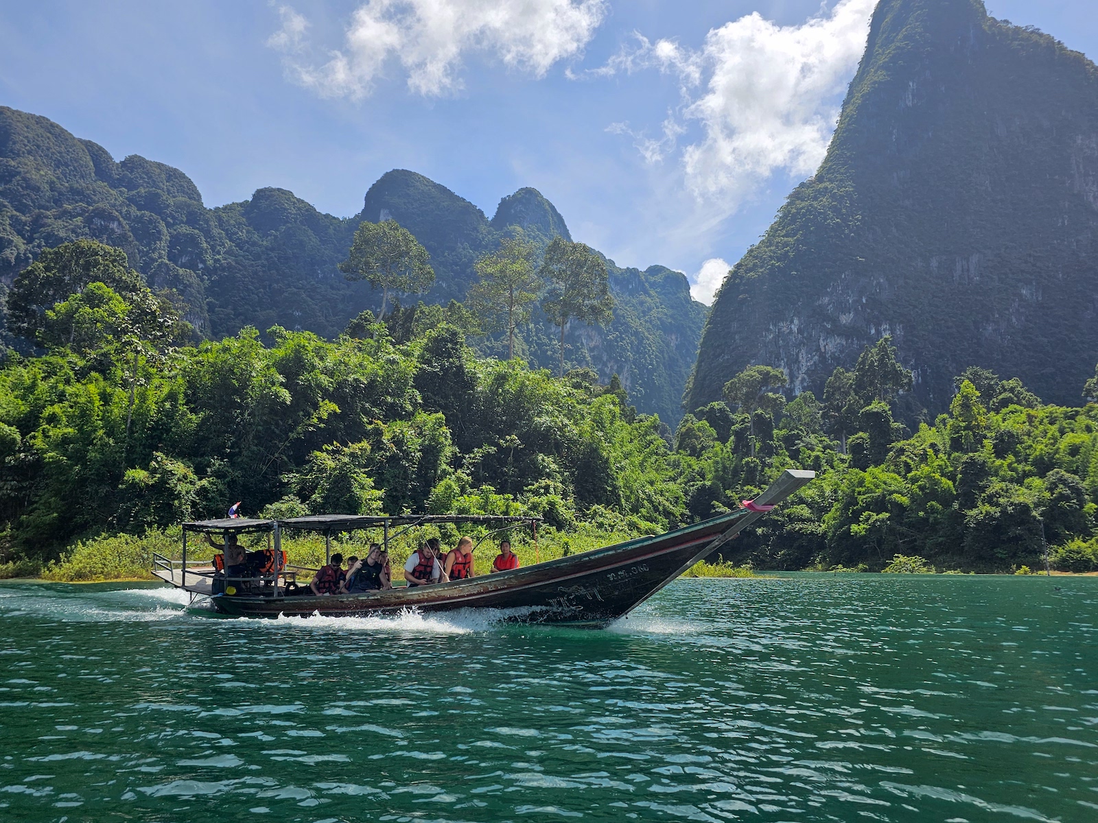 搭乘**私人长尾船**游览 Cheow Lan 湖,享受宁静的环境和美丽的自然风光。惊叹于著名的“三兄弟”,一组由 3 个几乎相同的石灰岩层组成,并发现当地的考索野生动物。