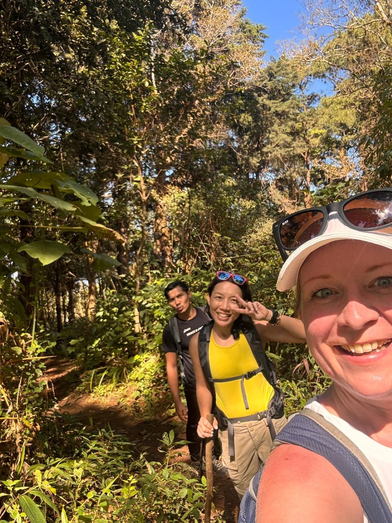 体验从您在酒店接客开始。然后,我们将驱车前往素帖寺,在那里我们将参观清迈著名的寺庙,那里有各种佛像,以及可以看到清迈市的观景点。然后,我们将从素帖寺徒步前往坤昌千村,这是一条穿过素帖山国家公园阴凉森林小径的步行道,距离为 11 公里。到达村庄后,我们将享用午餐、当地茶或咖啡,欣赏山景和新鲜空气。补充能量后,我们继续前往 Doi Pui 山顶,这是一条相当具有挑战性的路线,沿着山脊行走,观赏 Doi Hua Mu 的观景点。当我们到达 Doi Pui 山顶时,我们将再步行 2 公里到当地的停车场。这条路线总共 15 公里