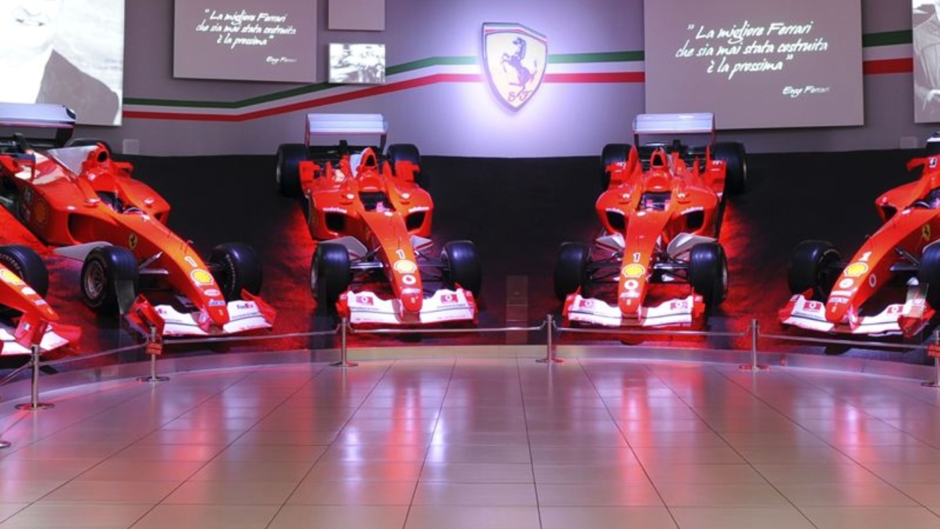 走进沉浸式显示屏,展示法拉利在一级方程式赛车历史和锦标赛中的统治地位