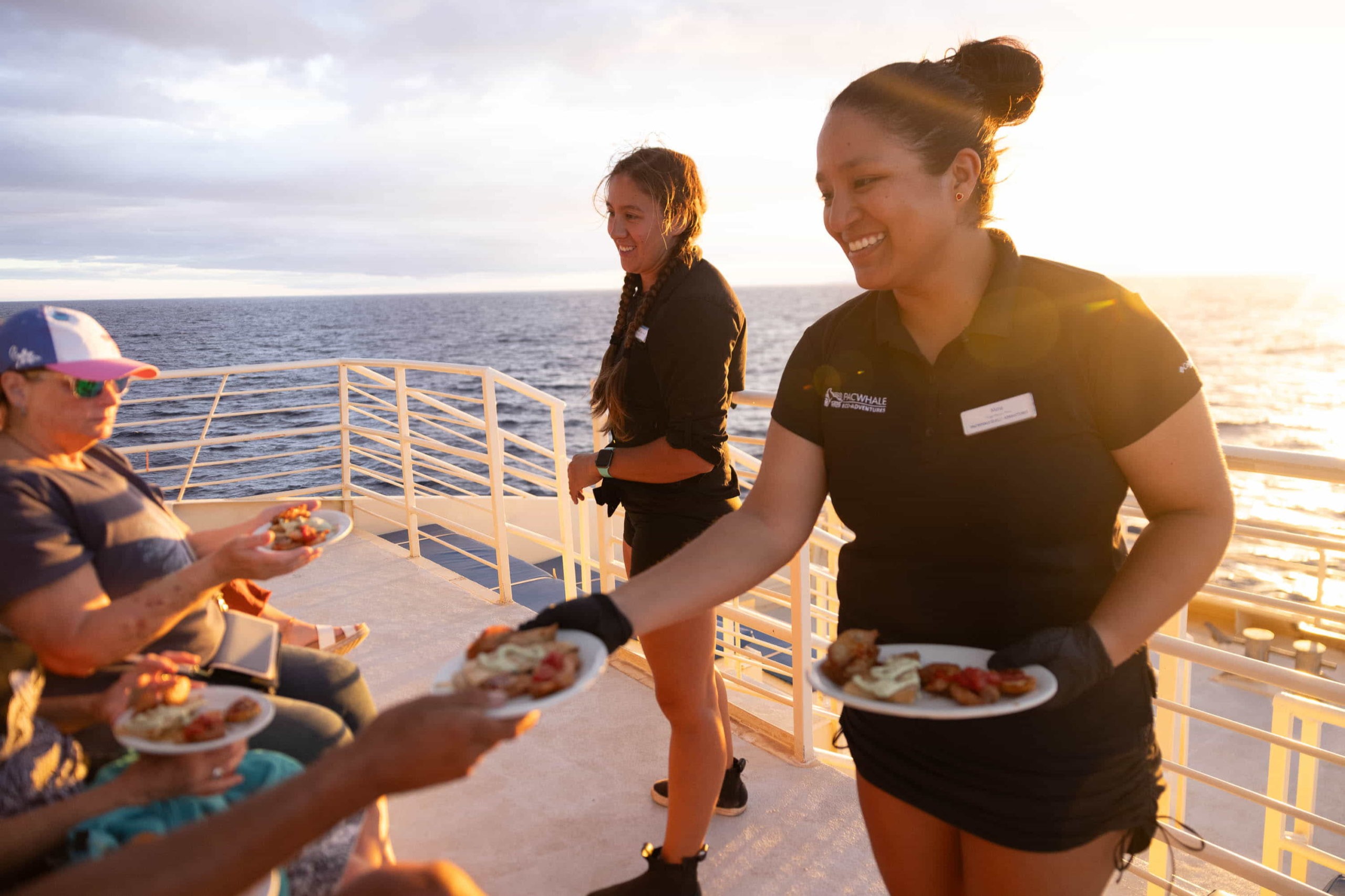 在游船上欣赏毛伊岛的日落,同时品尝美味的开胃菜和饮品