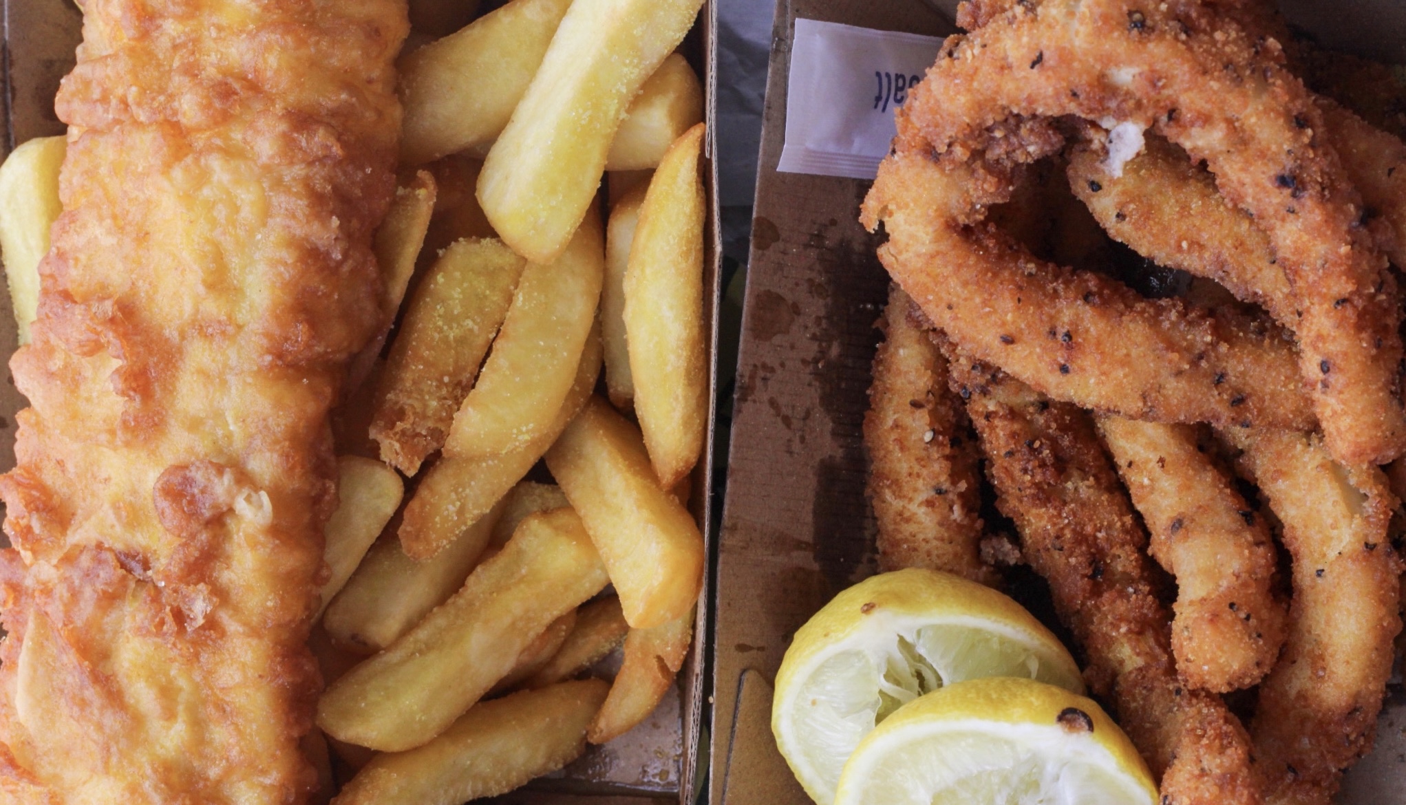 尽情享用当地捕获的炸鱼和薯条(午餐自费)