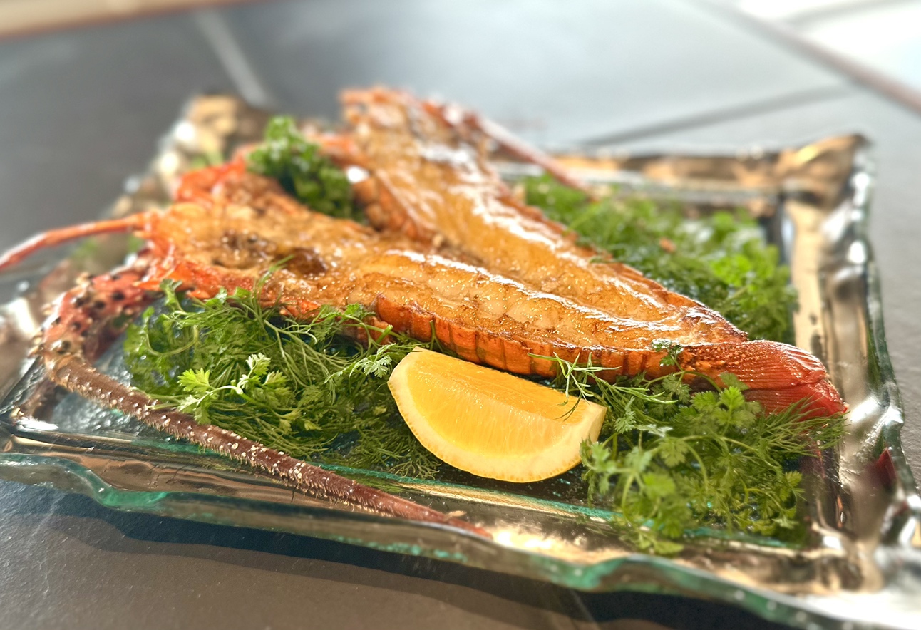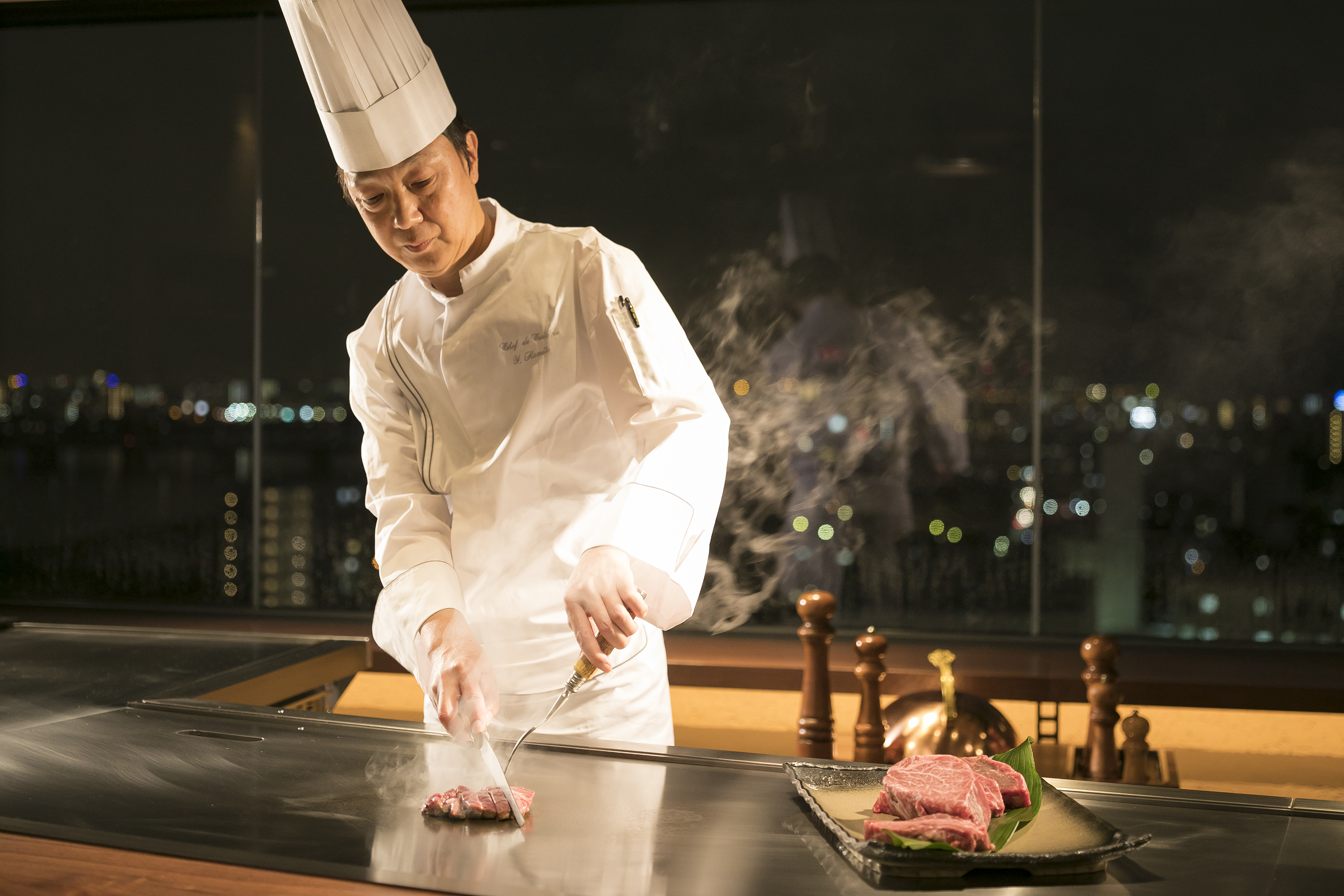 逢坂铁板烧提供日本牛肉,主要是近江牛肉,由厨师精心挑选,还有优质海鲜,如伊势龙虾。