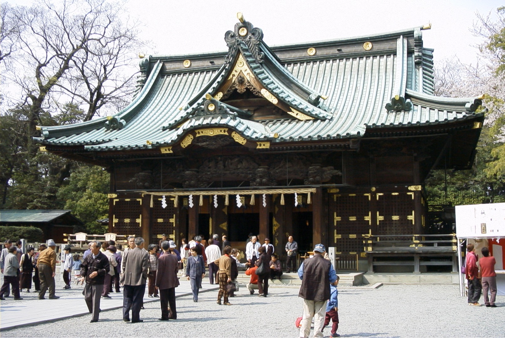 在著名的三岛神社停留,观赏该地区盛开的樱花