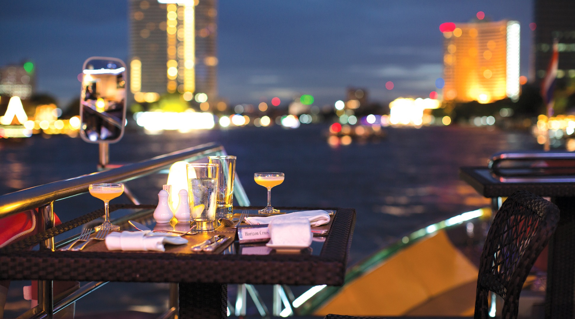 搭乘香格里拉地平线号邮轮,沿着湄南河享受五星级豪华晚餐游船!登上这艘时尚的游轮,在曼谷欣赏风景。沐浴在凉爽夜晚的平静氛围中,在船上宽敞的内部空间中尽情拍摄您想要的照片。体验船上专业服务员和工作人员提供的五星级高品质服务。尽情享用美味的自助晚餐,其中包括国际美食,从免费海鲜到甜味奶油甜点,应有尽有。请务必预订特价,以获得终极游轮体验!