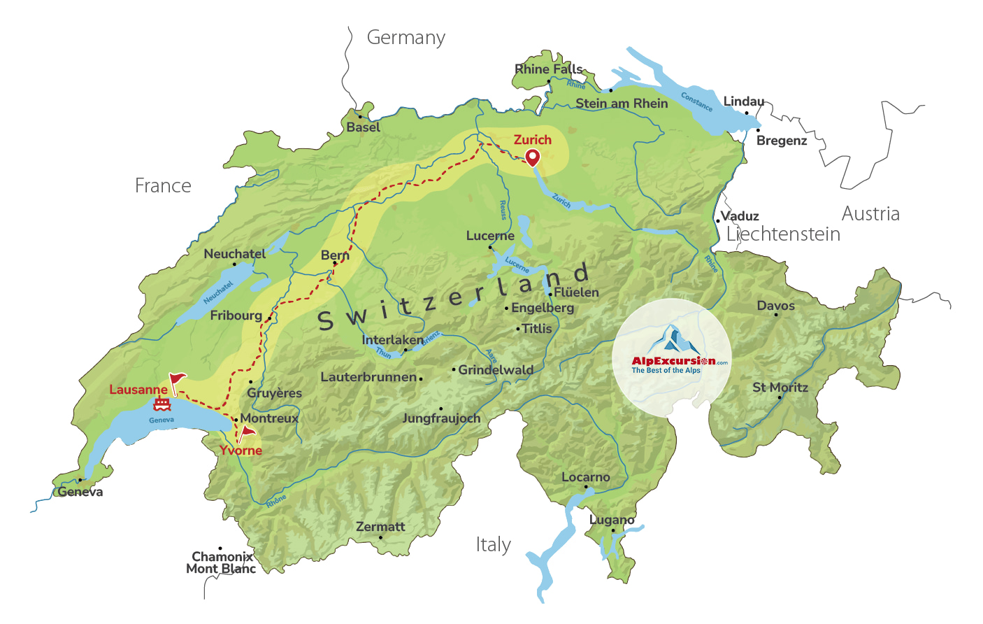 巡游结束后,我们将带您前往伊沃讷的 Domaine Dillet,这是一家以优质葡萄酒而闻名的瑞士著名酒庄。参观酒窖,了解酿酒过程和瑞士葡萄酒历史。品尝四种优质葡萄酒,感受瑞士葡萄酒独特的风味和香气。