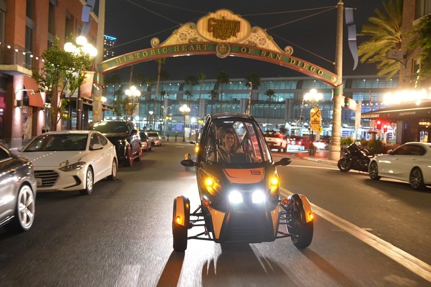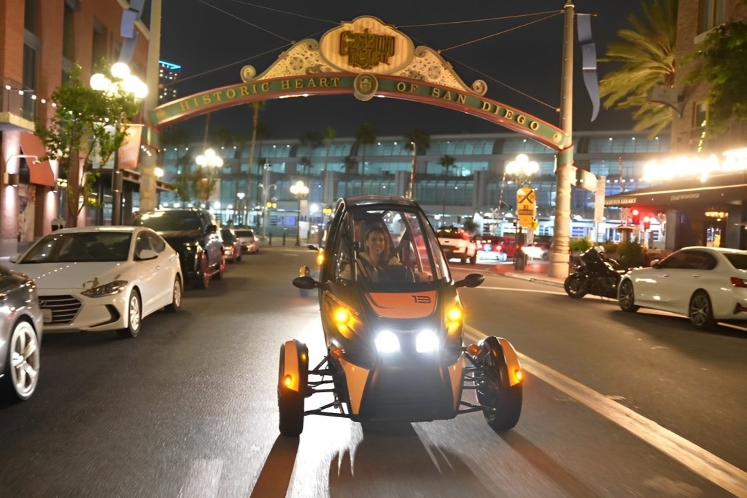 搭乘 GoCar 欣赏圣地亚哥的夜景和灯火通明的街道