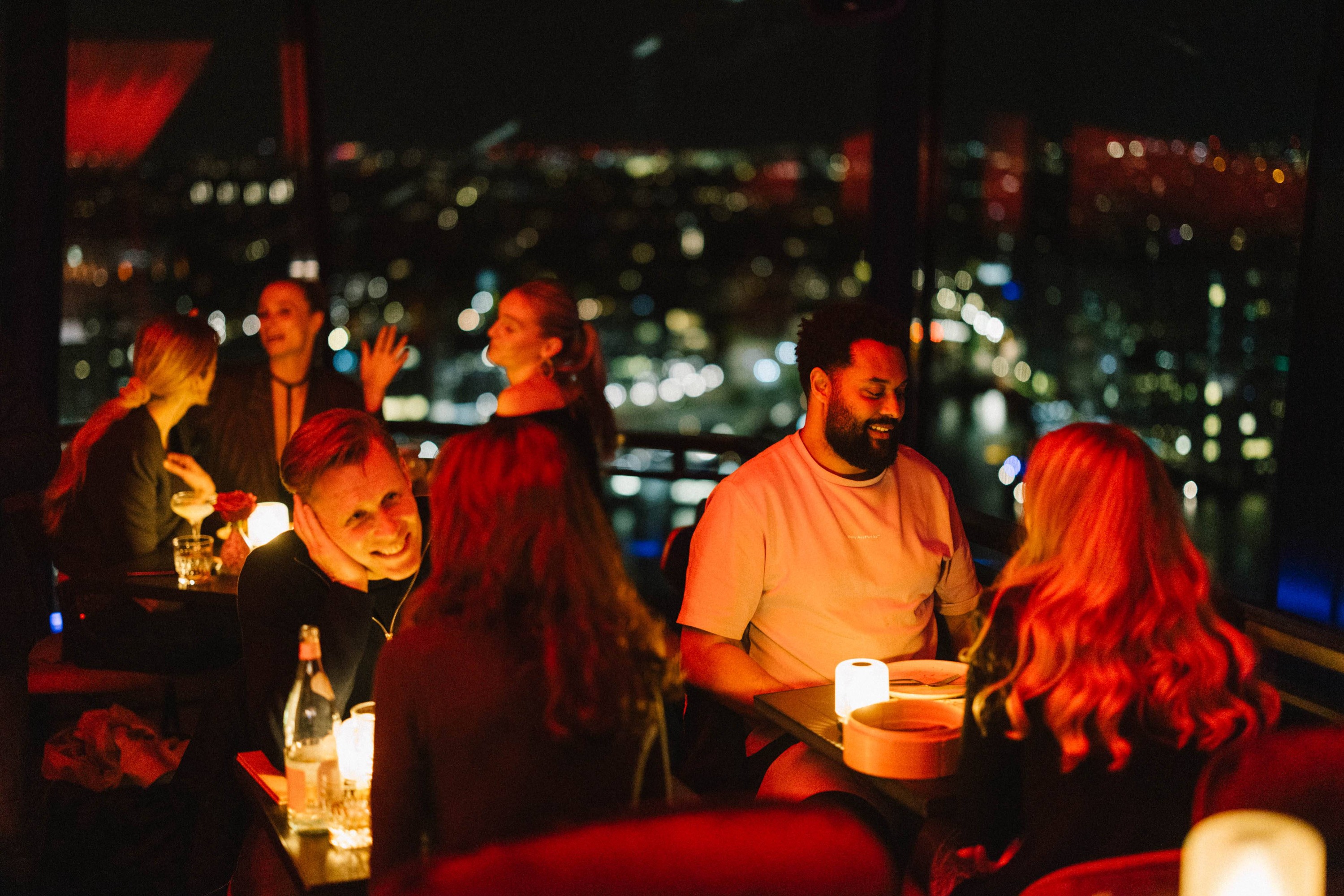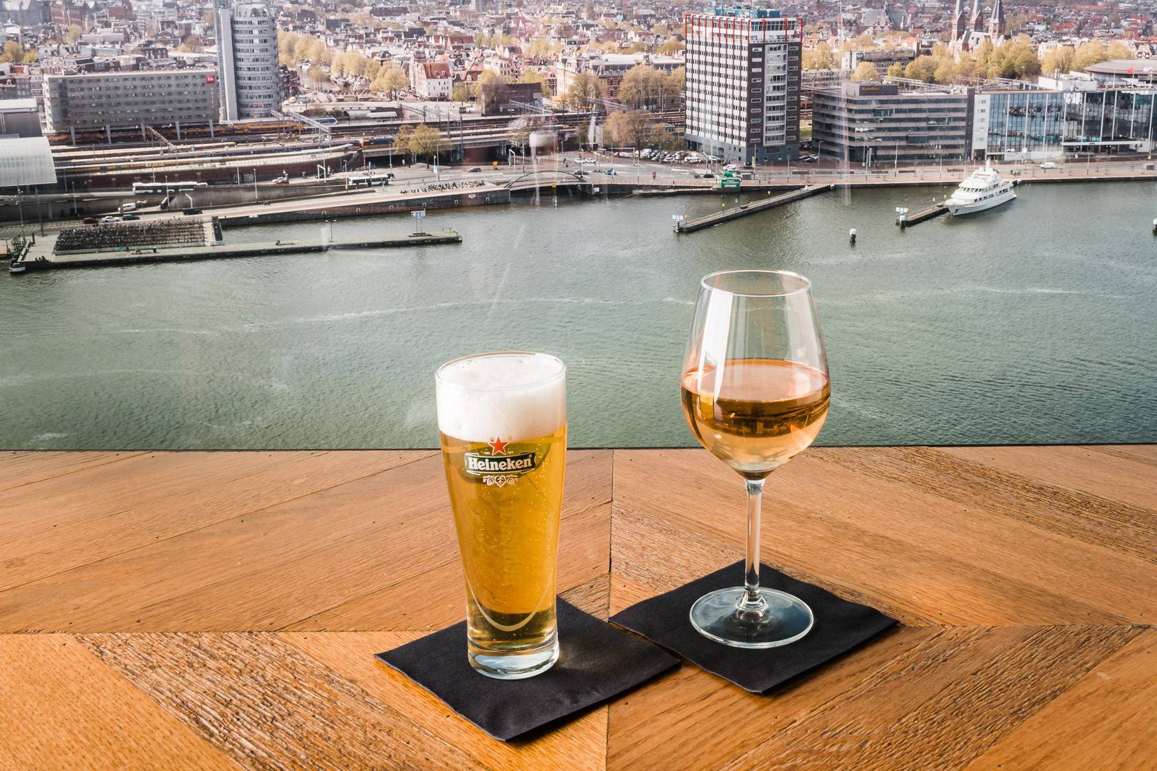 在 A’DAM Lookout 的全景餐厅一边欣赏美景,一边品尝喜力啤酒