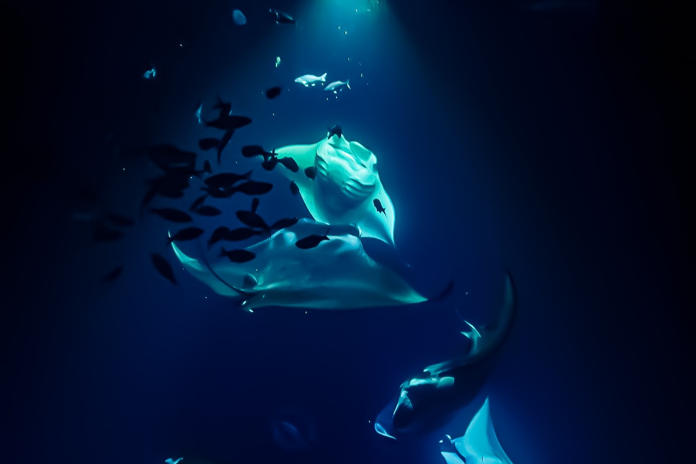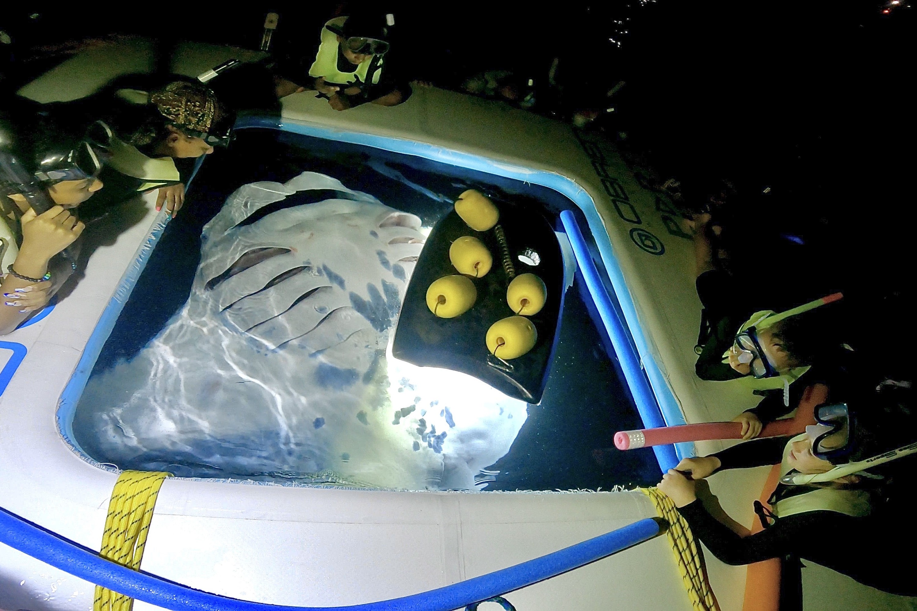 使用我们独特的发光观赏漂浮物吸引蝠鲼来近距离接触