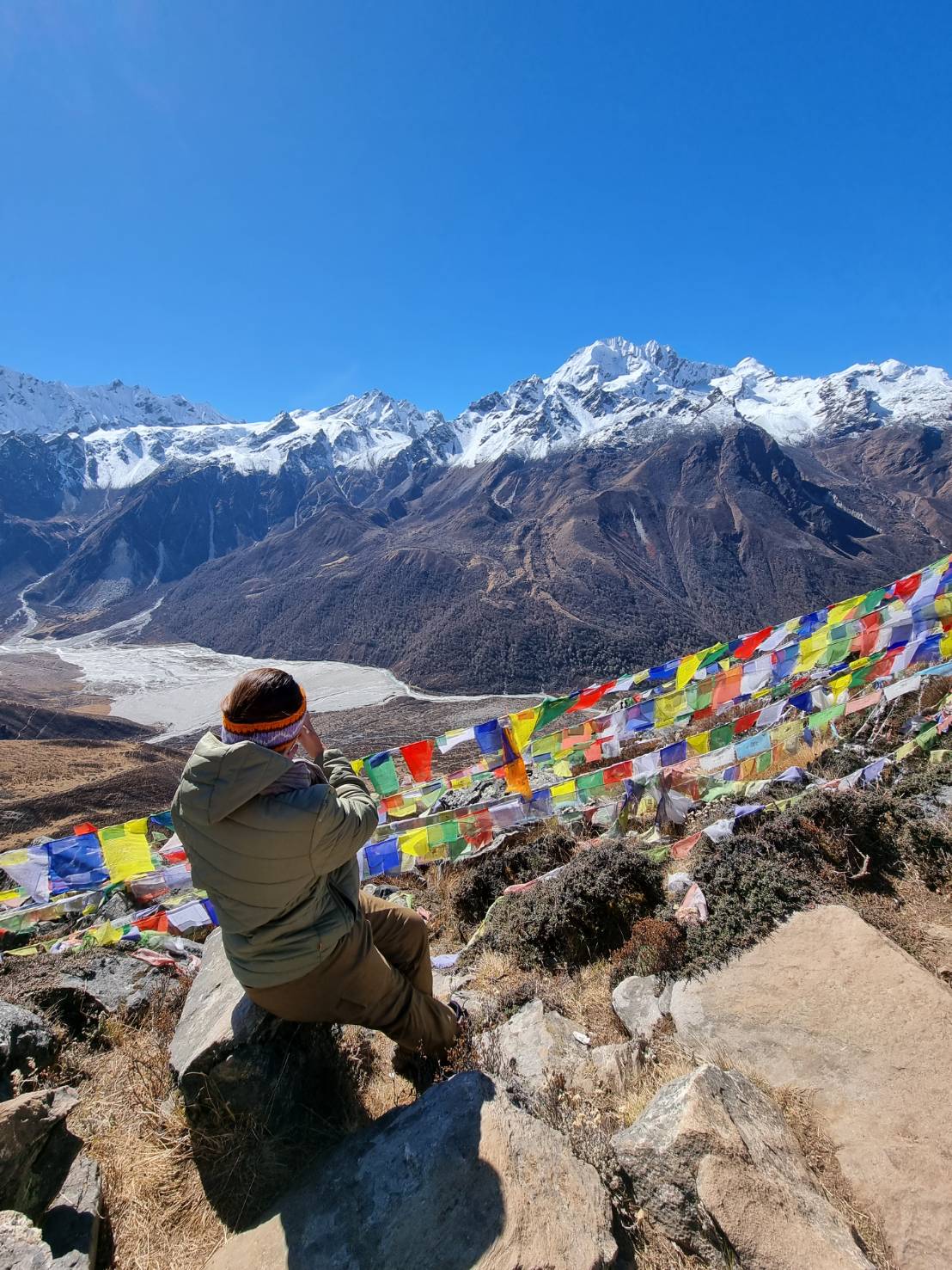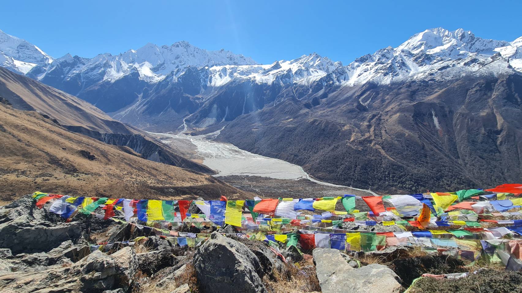每天都能欣赏到白雪皑皑的山峰的壮丽景色,最后到达宁静的 Kyanjin Gompa,这是一座古老的修道院,可欣赏到山脉全景。这条温和的健行非常适合想要沉浸在大自然中、远离拥挤小径的人。一路上,您将欣赏到Langtang山谷的宁静之美,