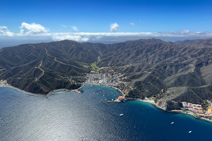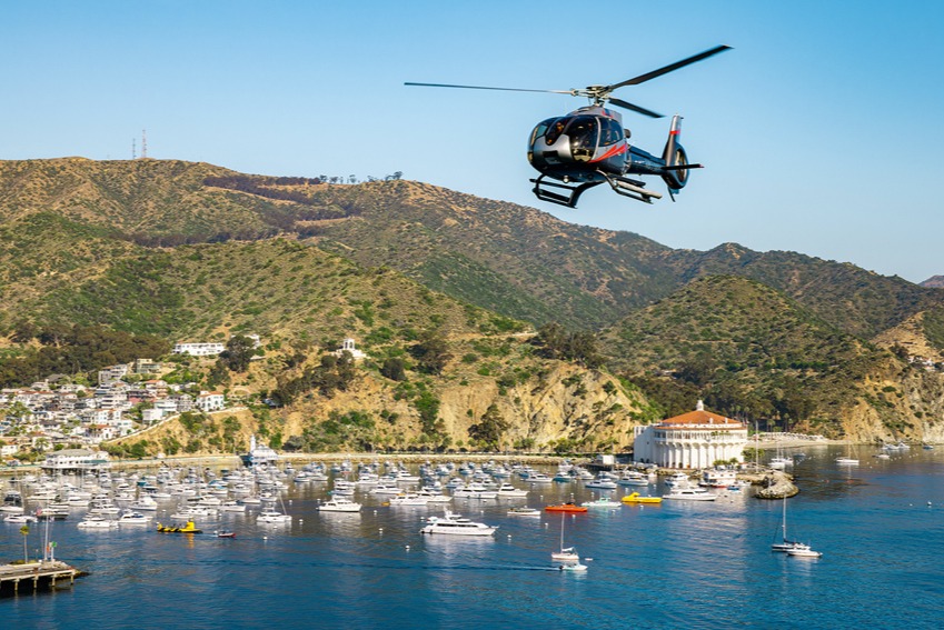 从舒适的直升机上以独特的视角欣赏卡塔利娜岛的美景