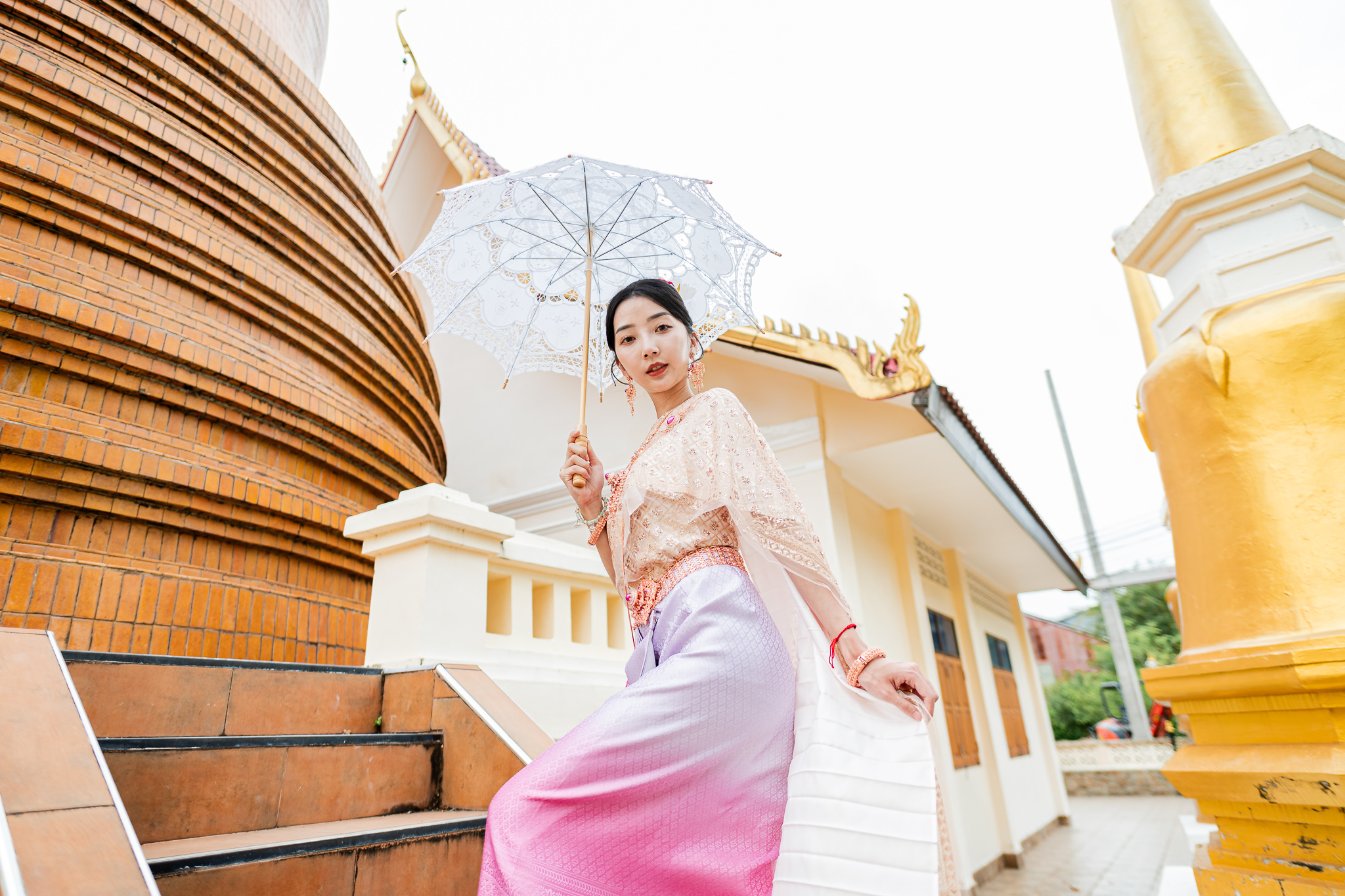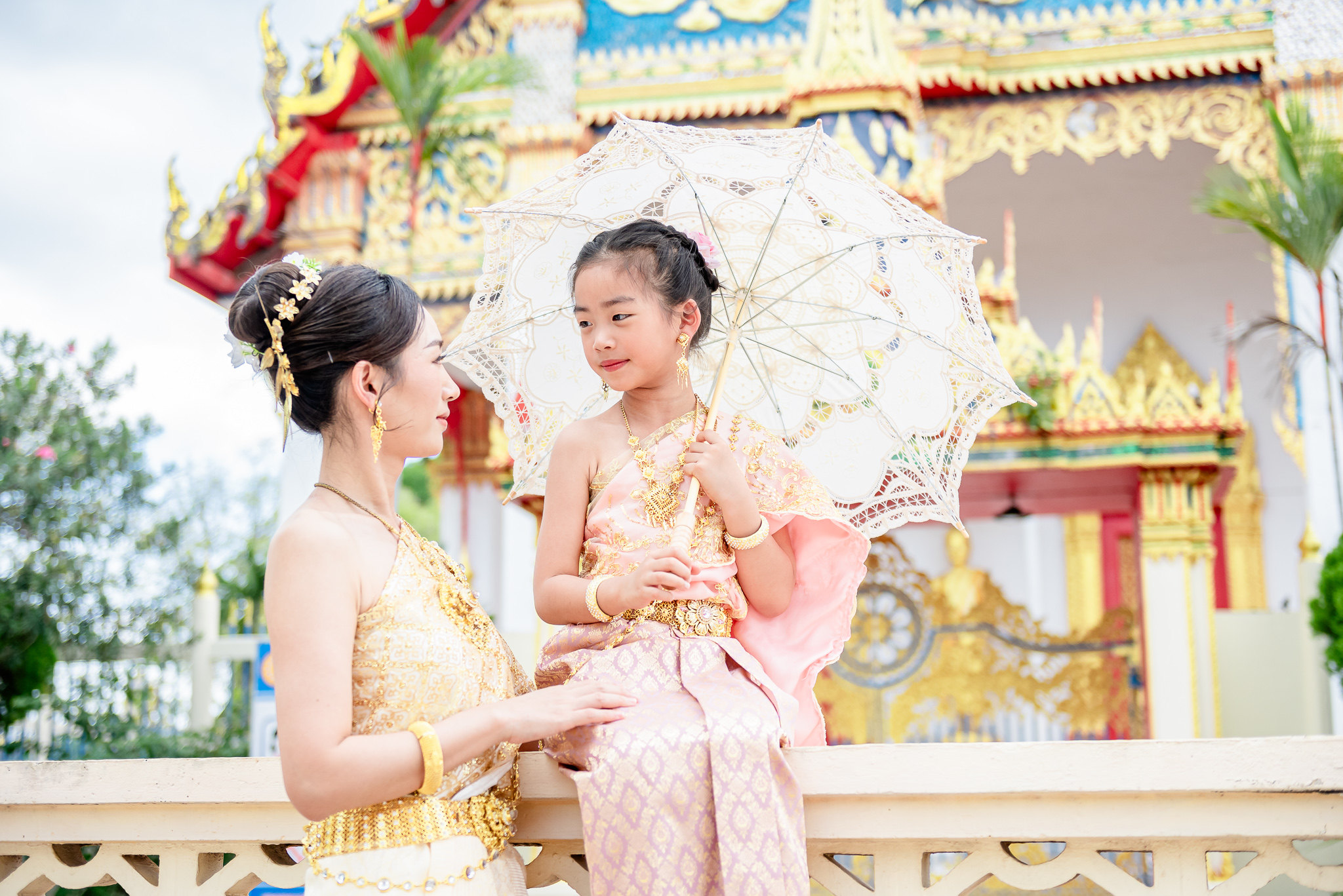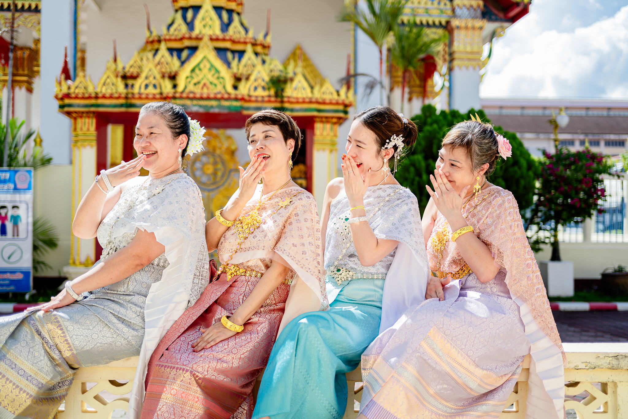 泰式服装租借活动,包括配件和泰式发型设计服务,工作人员帮忙打扮