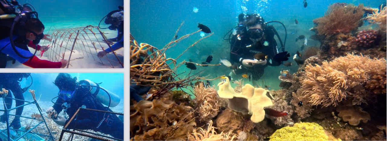组合潜水和珊瑚种植