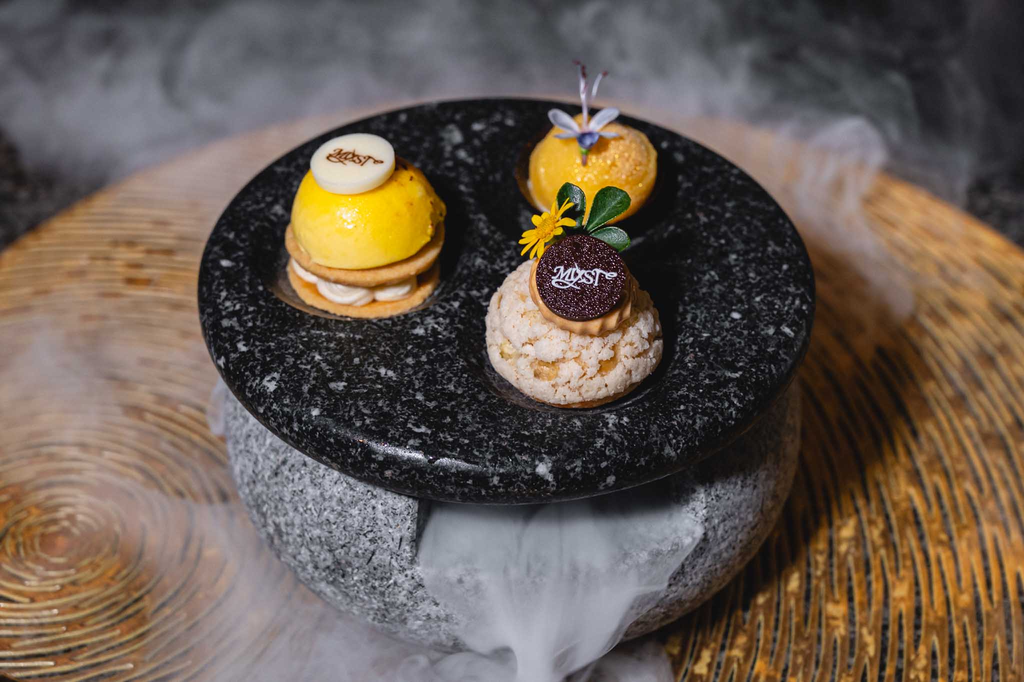 在 **Myste**,食客可以享受迷人的氛围,餐厅坐落在一个神秘的洞穴内,有瀑布和薄雾,营造出宁静而奢华的氛围。精致的用餐体验提供艺术烹饪创作之旅,现代欧洲菜肴受到泰国和国际风味的启发。摆盘新颖,每道菜都融入了自然元素,既体现了优雅又体现了创造力。令人惊叹的视觉效果、精致的口味和空灵的环境相结合,使 Myste 成为一个独特、身临其境的用餐目的地。