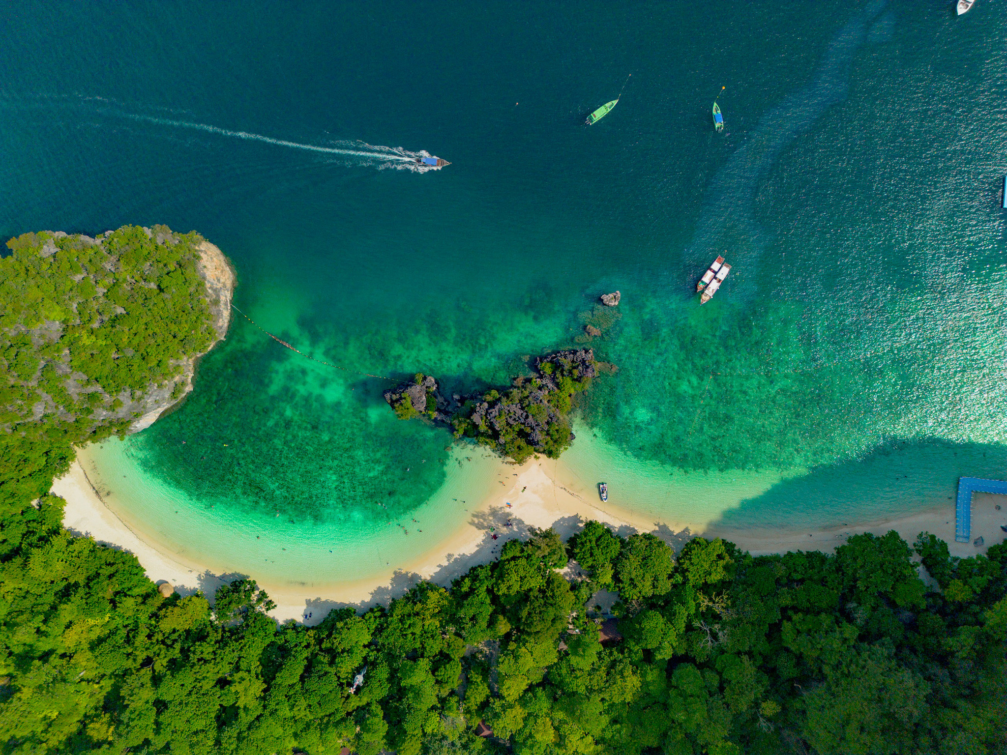 参观宏岛,探索甲米的泰国岛屿天堂。这个令人惊叹的四岛群岛属于国家海洋公园,从奥南乘坐快艇仅需 20 分钟。在攀牙湾迷人的背景下,这些岛屿理所当然地赢得了泰国最美丽岛屿之一的称号。 Hong 在泰语中直译为“房间”——这是有原因的:这些岛屿与世隔绝,中心是一个完全被悬崖包围的潟湖。您将能够远离拥挤的游客,享受完全的隐私、清澈的海水和阳光明媚的沙滩,让您真正放松。
