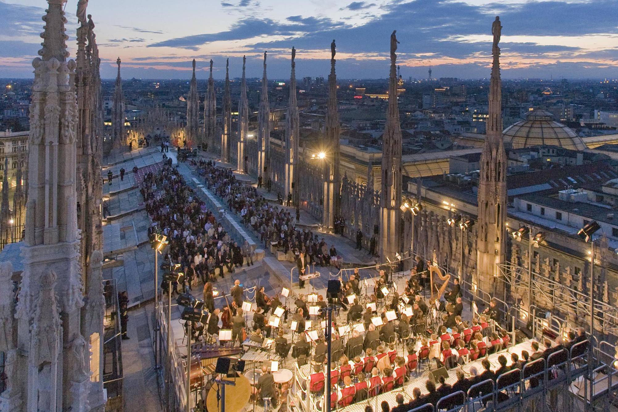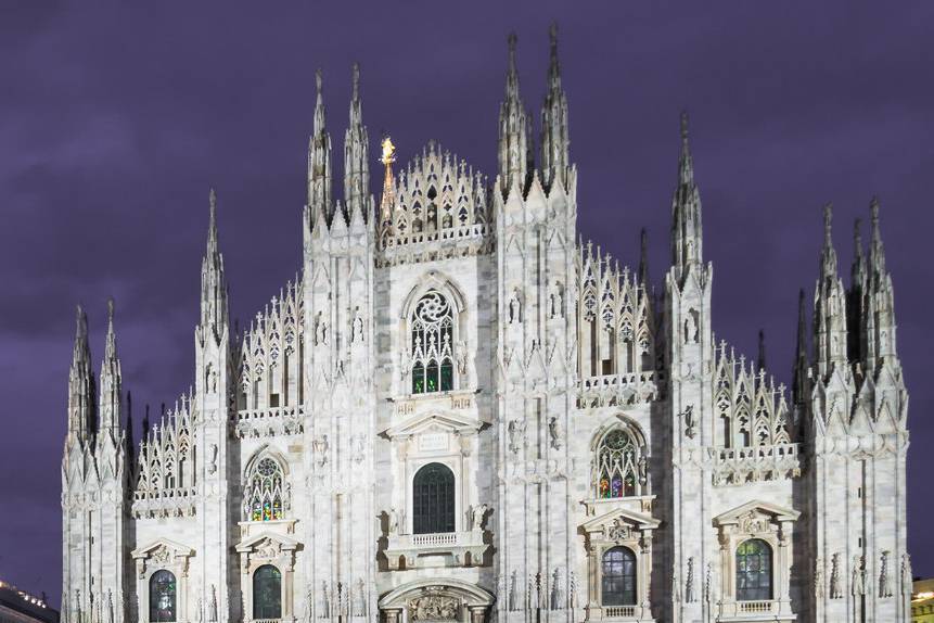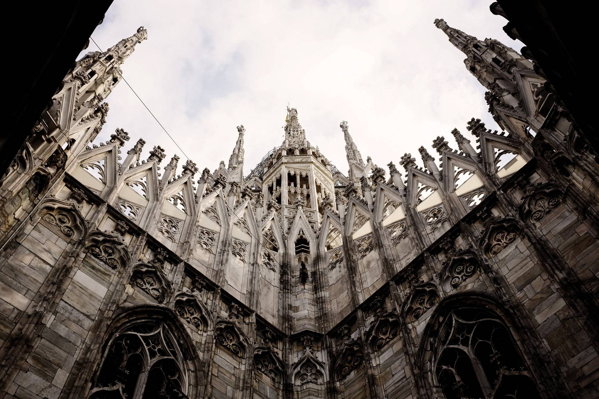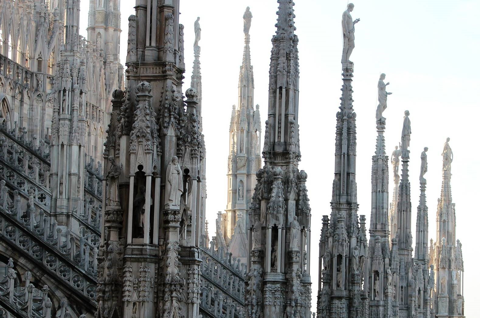 米兰大教堂高耸的尖塔雄伟地主宰着天际线