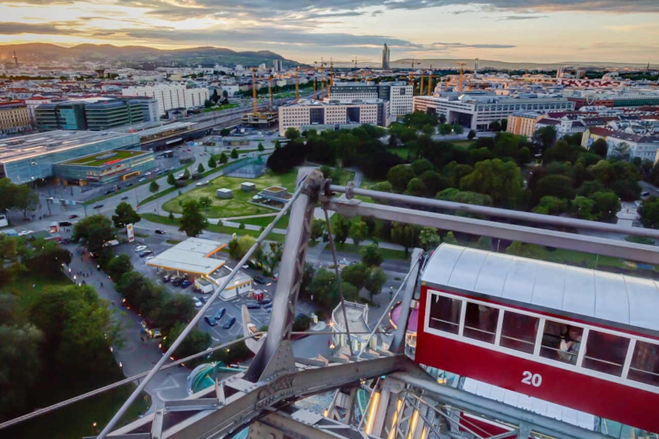 从高耸的巨型摩天轮欣赏维也纳令人惊叹的建筑全景