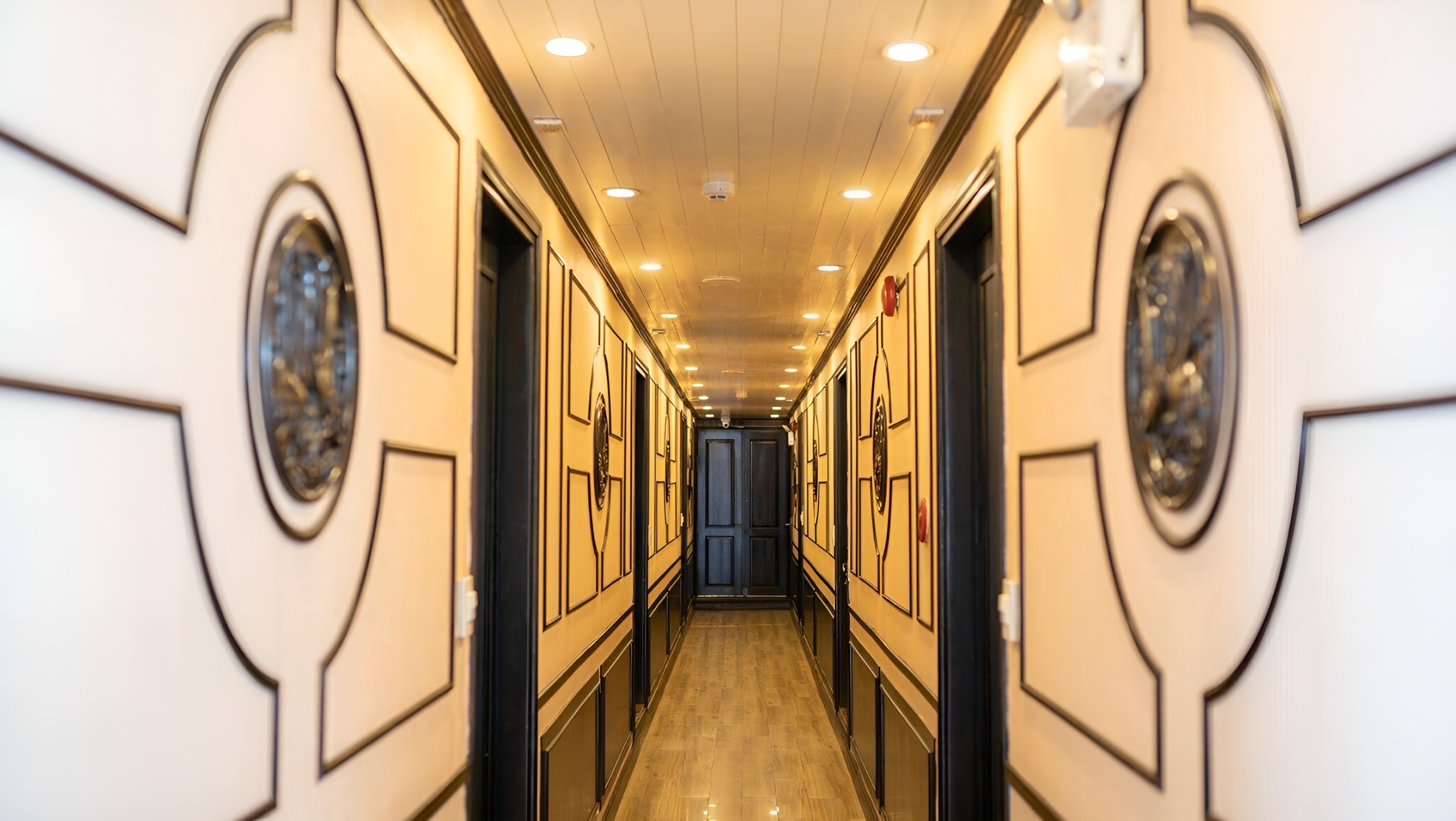 邮轮拥有21间宽敞的客舱,面积从26平方公尺到50平方公尺不等,每间客舱都配有自己的按摩浴缸。这让游客有机会绝对放松,同时欣赏下龙湾的壮丽景色。客舱设计配有现代化设施,确保舒适豪华的住宿体验