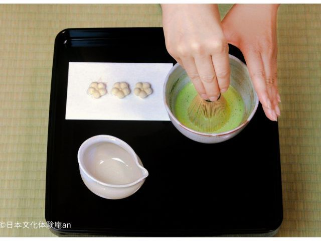 在茶道体验中,您可以在简短的讲座后随意享用自己的抹茶和茶。