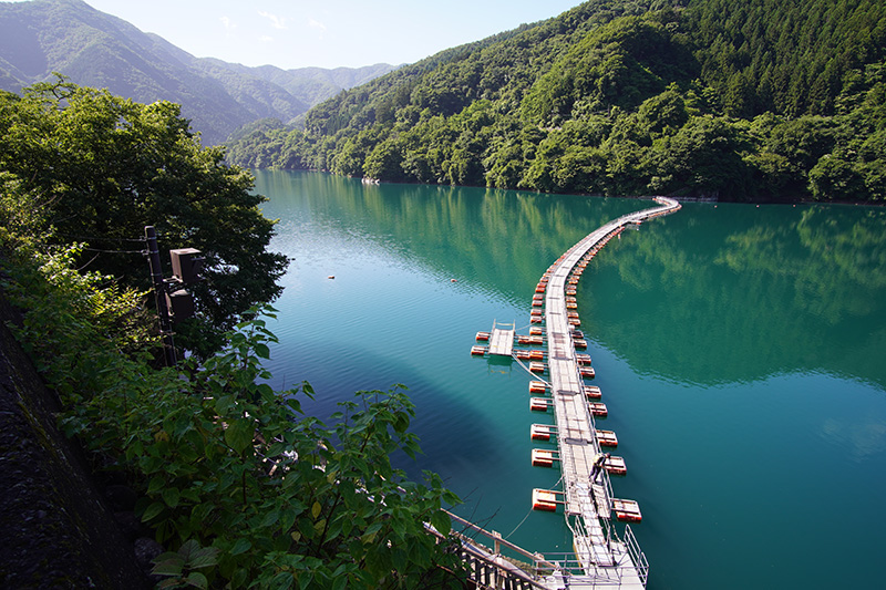 麦山浮桥是奥多摩湖上一座独特的浮桥,行走在桥上犹如漂浮在湖面之上,脚下的湖水波光粼粼,四周被群山环绕,景色如画。这个特别的体验让你感受到与大自然的亲密接触,仿佛置身世外桃源