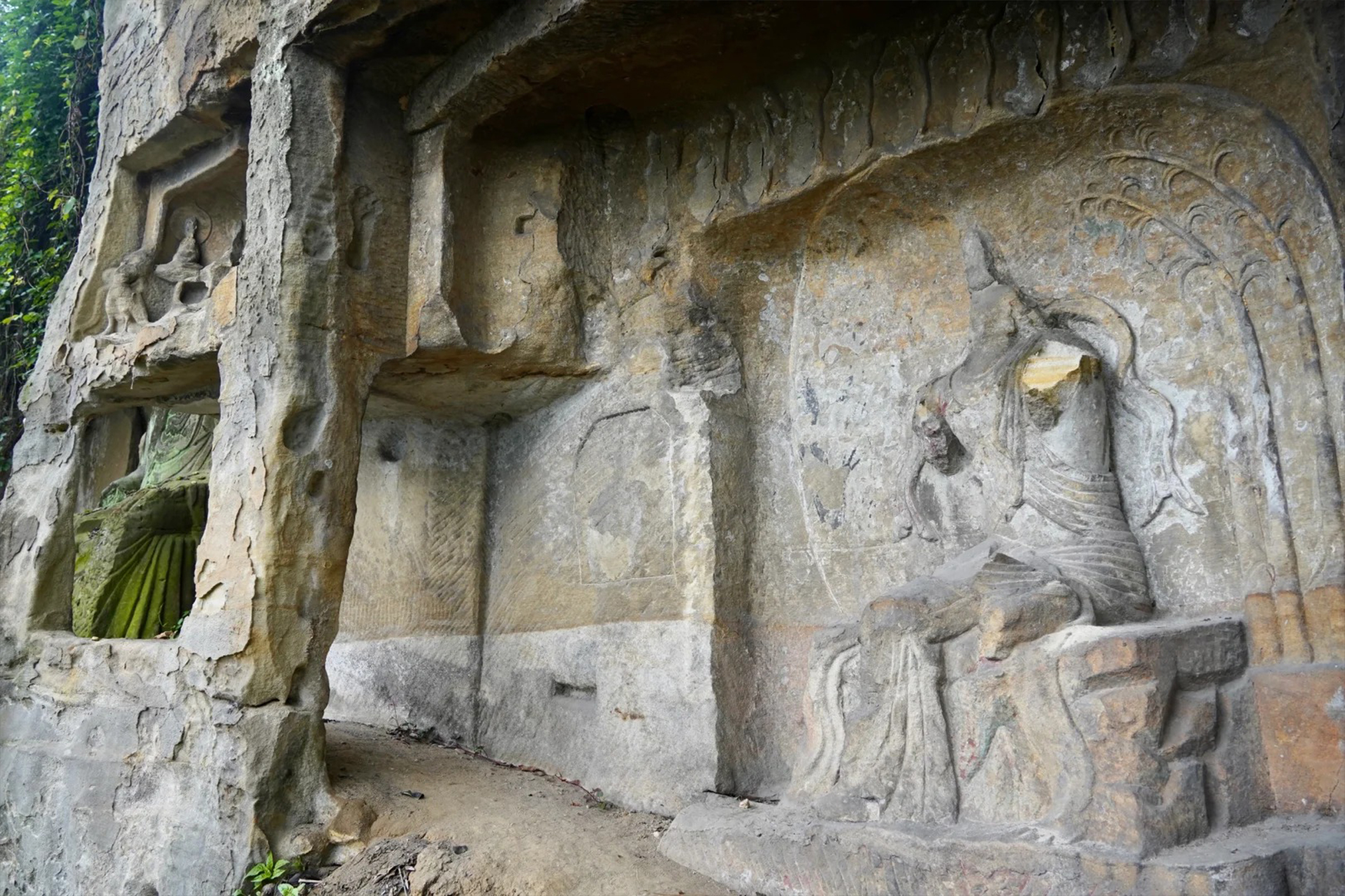 工匠们运用高浮雕、浅浮雕、圆雕等多种手法,将佛像的五官、衣纹等细节刻画得栩栩如生。同时,佛像周围的山体、水流、岩石等自然景观也被巧妙地融入到雕刻中,形成了一幅美轮美奂的画卷