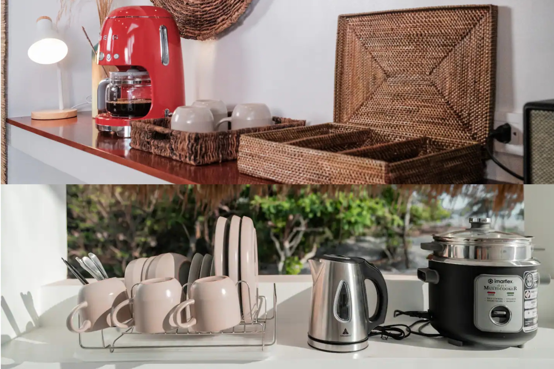 设施齐全的厨房配有电器和餐具,方便您自己准备饭菜