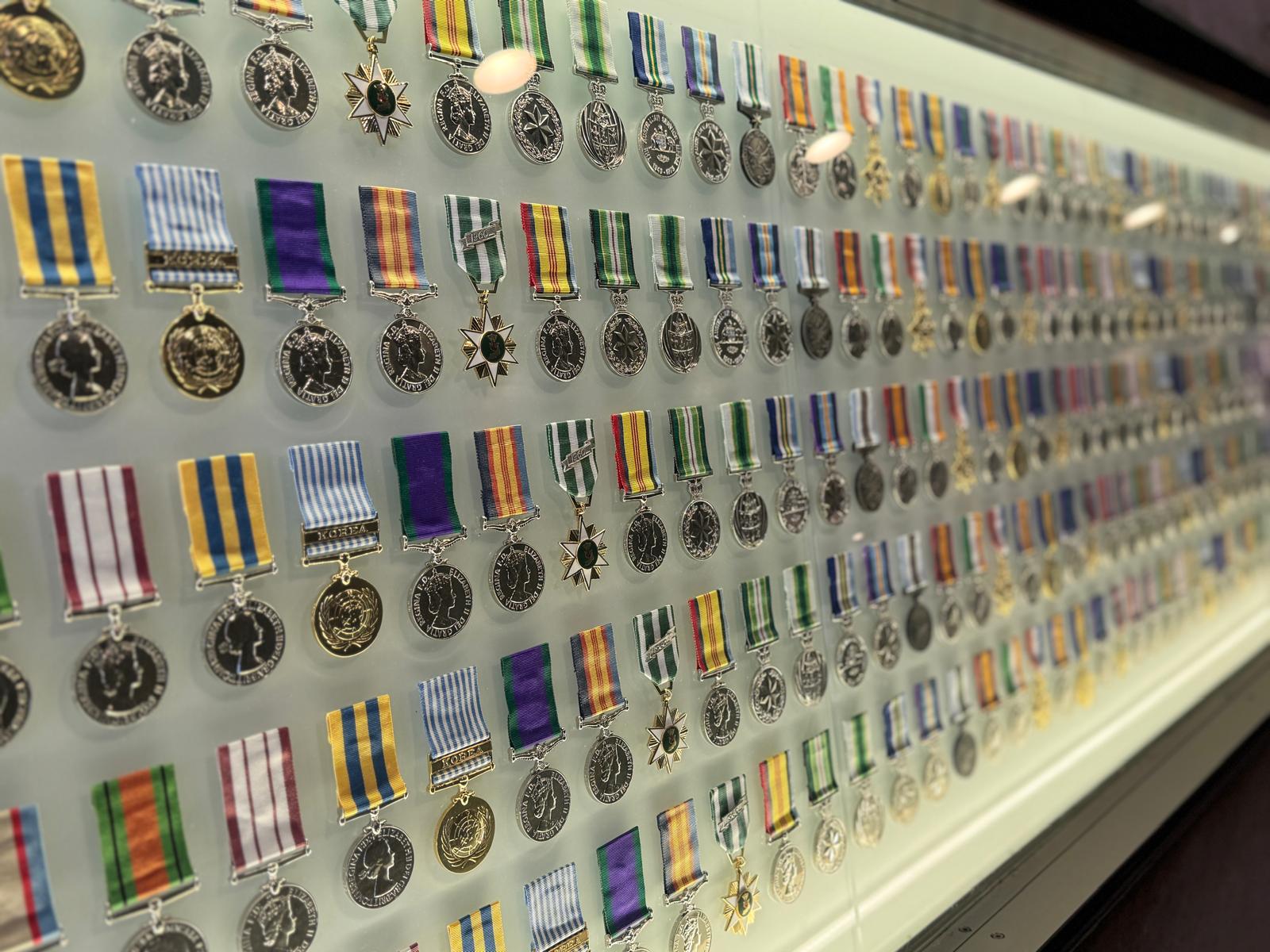 一组服务奖章展示了复杂的雕刻、五颜六色的丝带以及荣誉感和历史感。