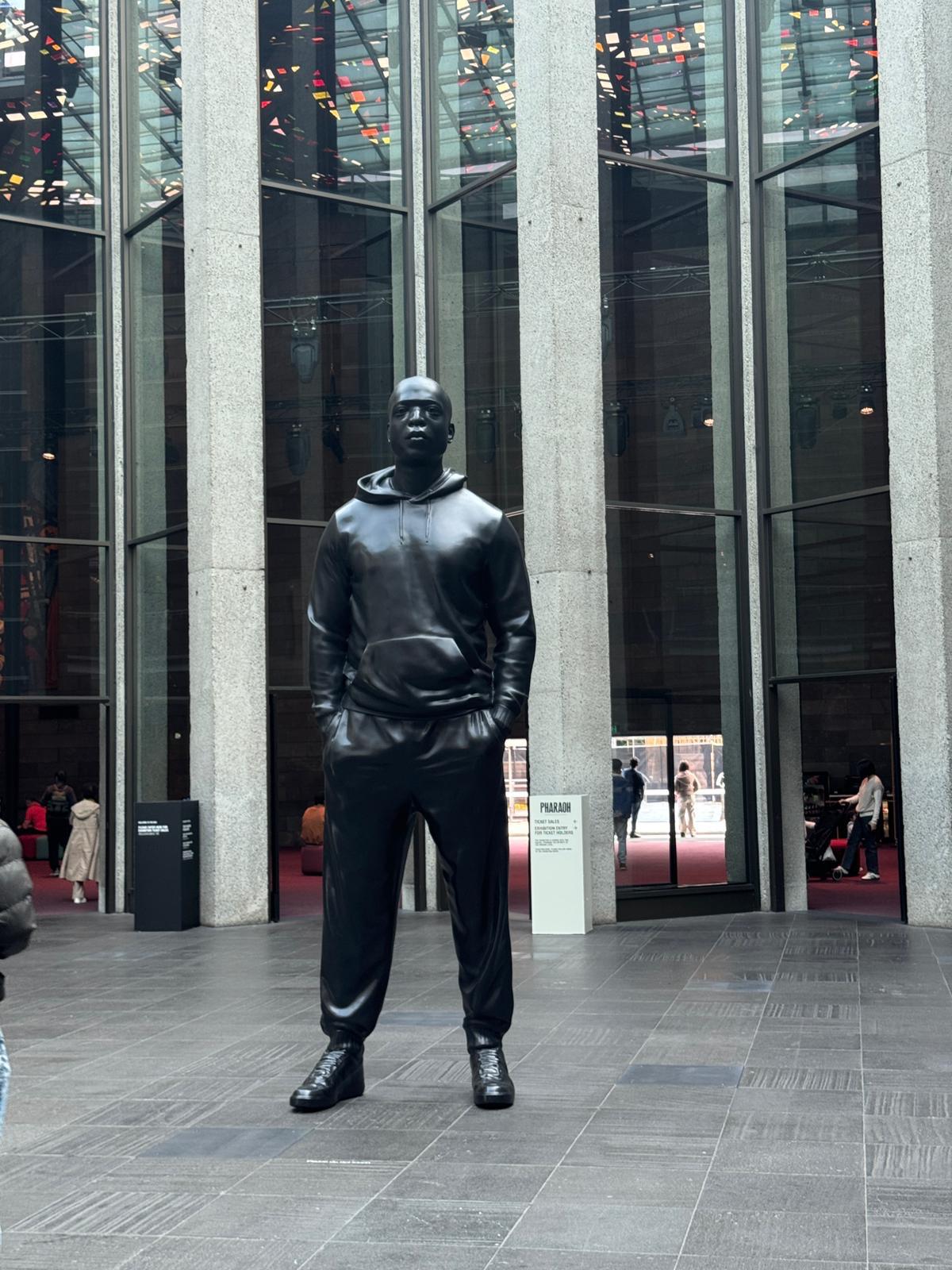 一座雄伟的雕像矗立在那里,雕刻着复杂的细节,捕捉了历史和艺术的时刻。