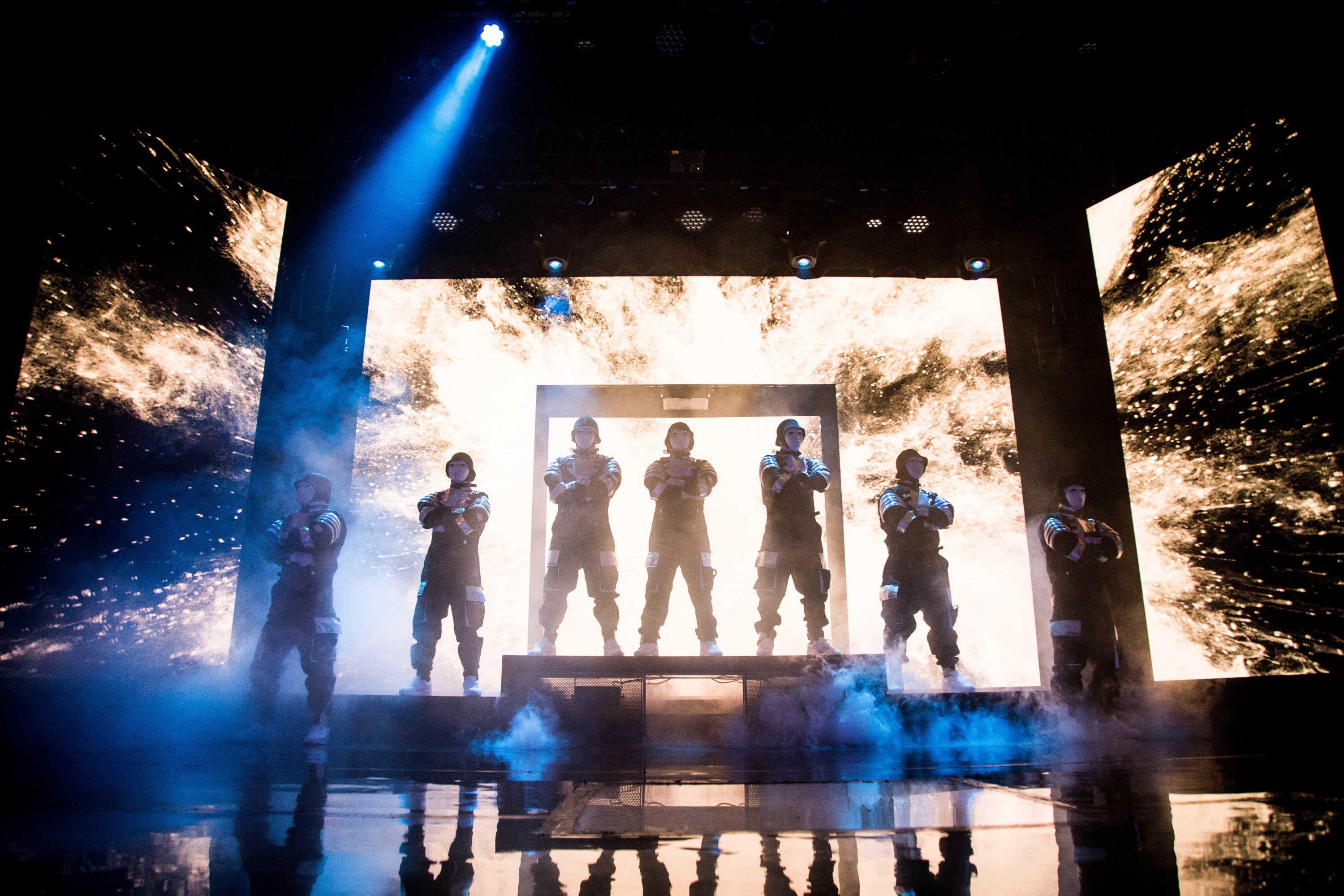 当 Jabbawockeez 表演他们令人惊叹的表演时,进入另一个拥有五彩缤纷灯光的世界