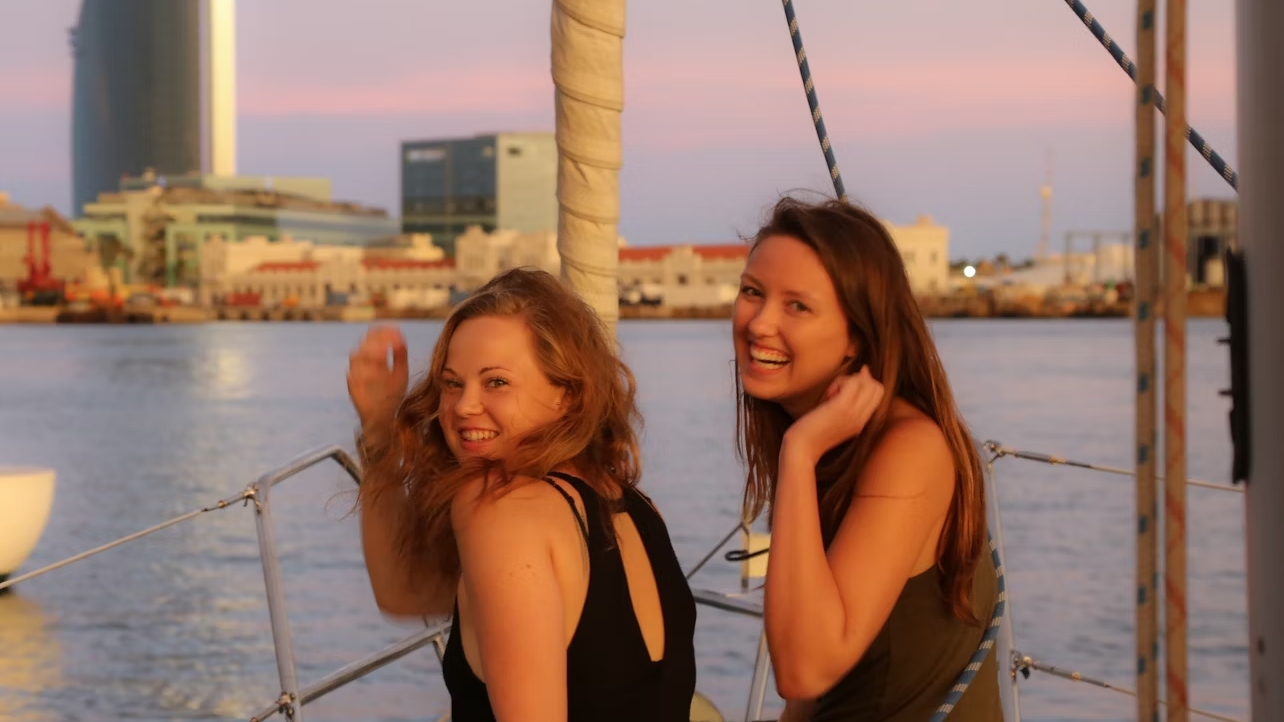 在两小时的航行冒险中捕捉日落时巴塞隆纳标志性的天际线