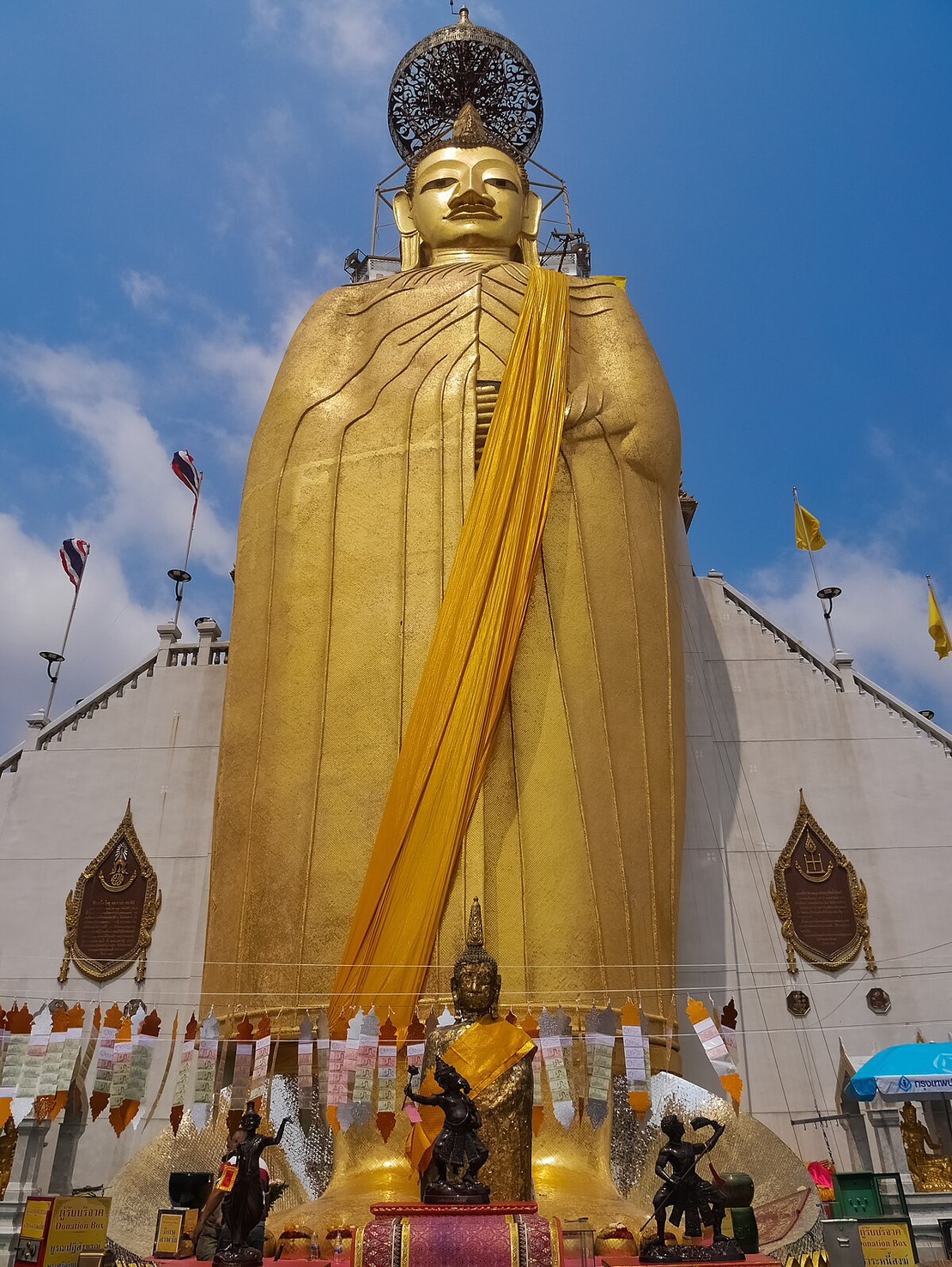 Wat Intharawihan 或 Wat Intharavihan 有一个突出的特色,那就是一尊 32M 高的站立佛像。这是一个非常奇妙的景象。还可以登上楼梯到达大佛顶