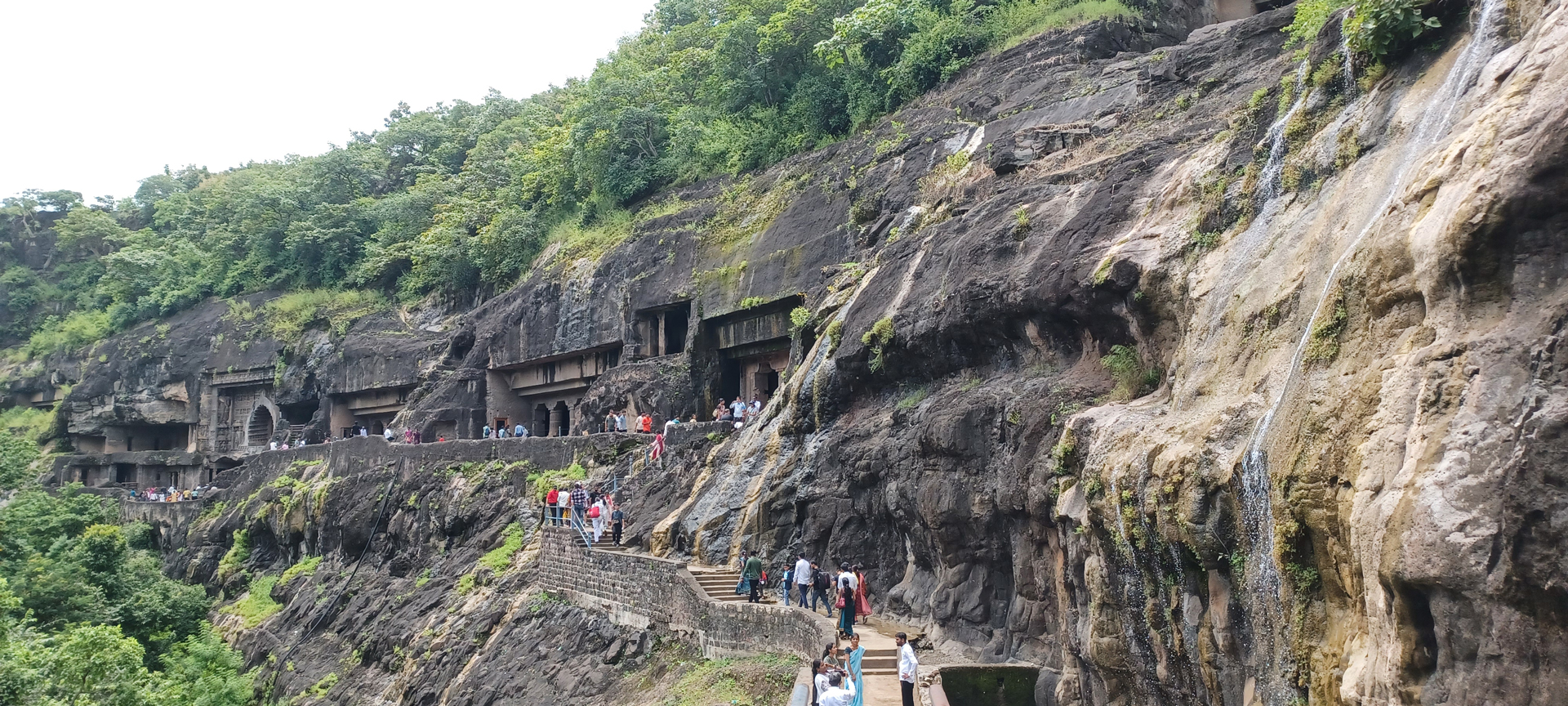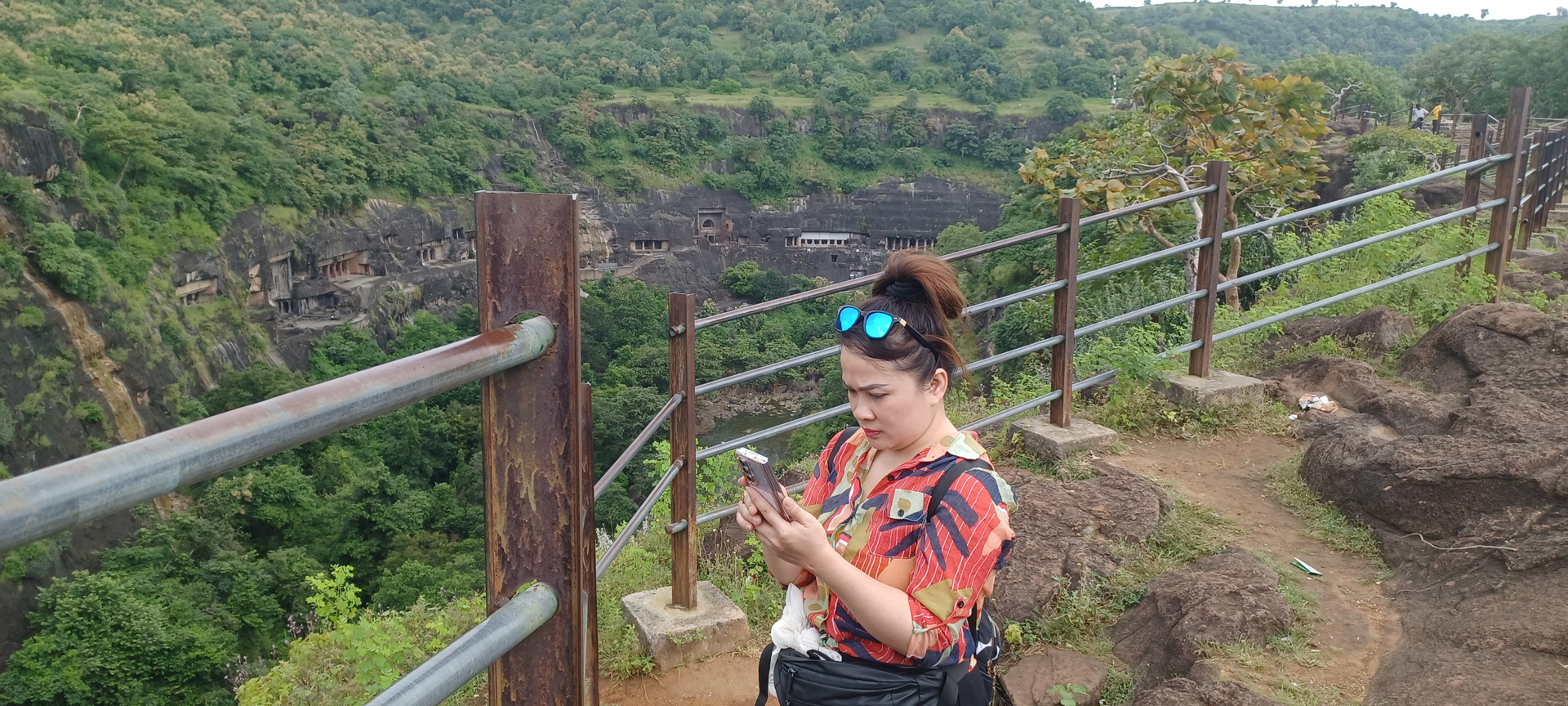 与我们的导游一起从上方观景点欣赏阿旃陀石窟的景色。