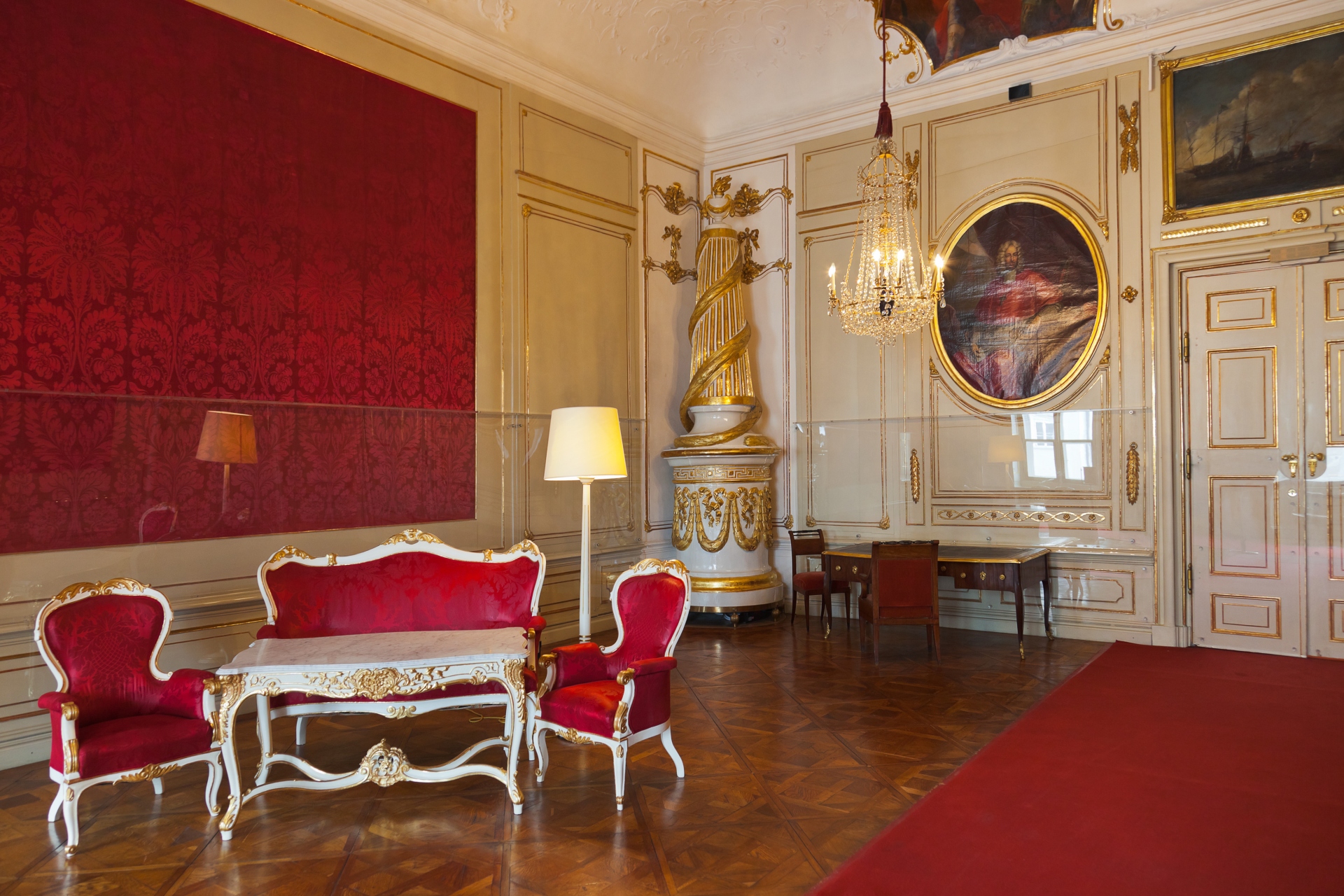 帝国公寓的典雅客房,配有丰富的红色内饰、镀金装饰和豪华家具