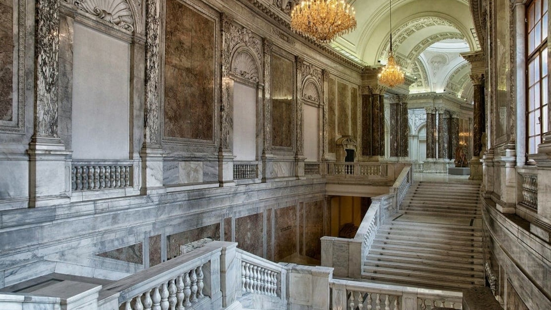 维也纳霍夫堡宫内华丽的楼梯,展现宏伟的建筑和帝国的优雅