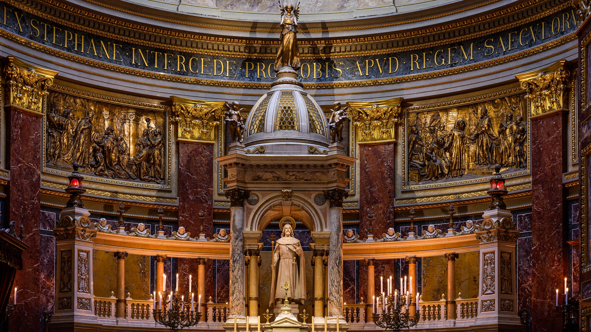 圣史蒂芬大教堂的祭坛拥有华丽的金色装饰、复杂的雕刻和神圣的氛围
