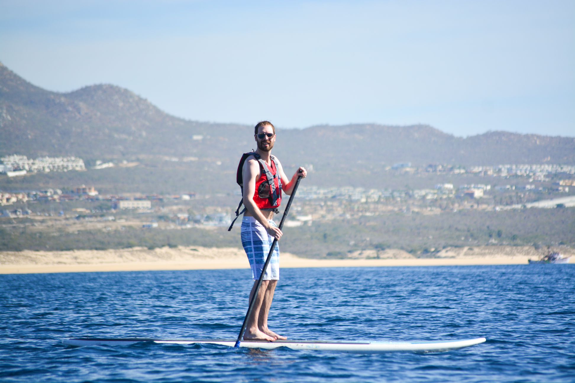 乘坐桨板滑向 El Arco,周围环绕着卡波风景如画的海岸线