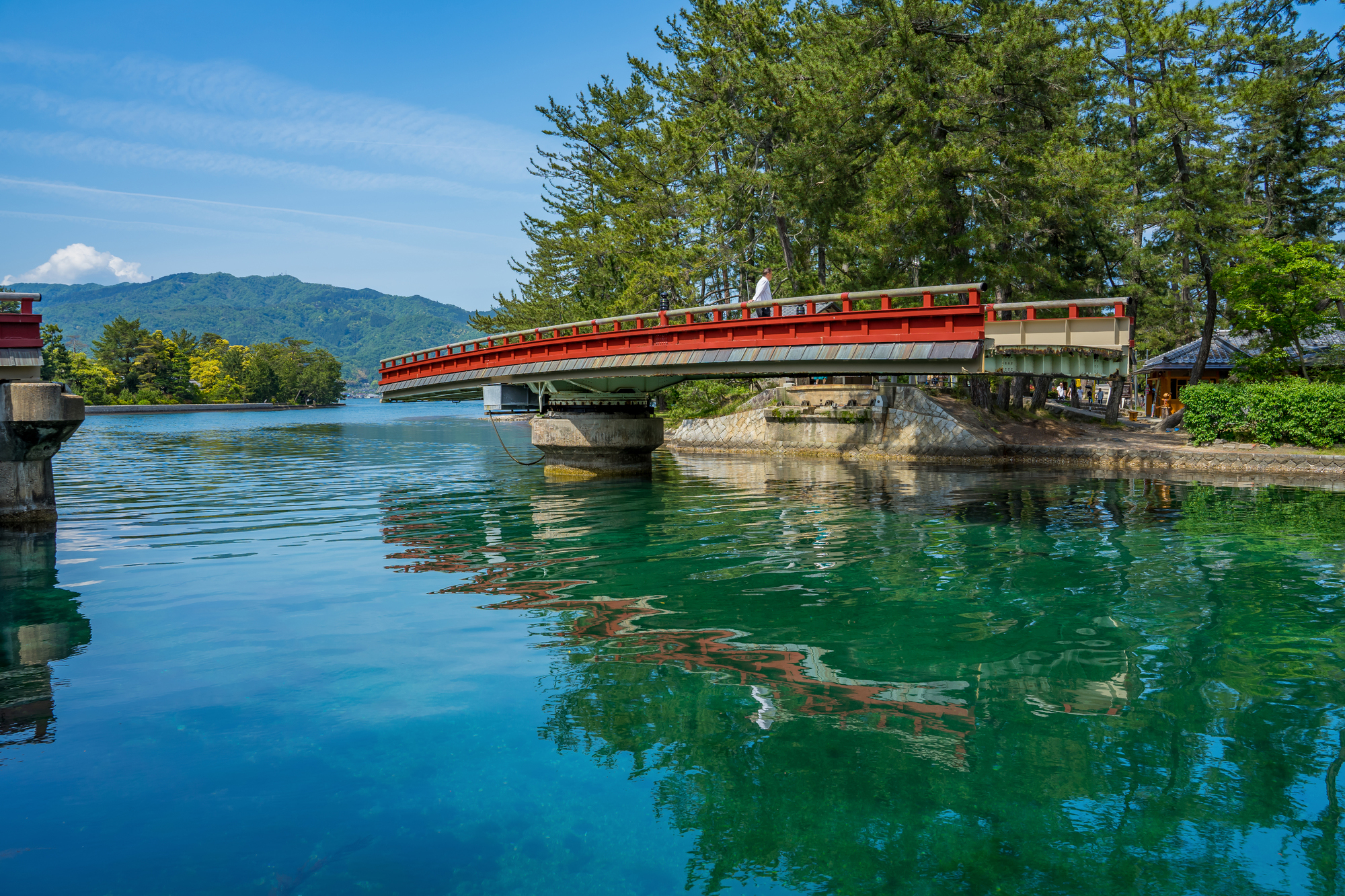 天桥立是位于京都府北部的风景胜地,在将日本海的阿苏海与宫津湾分开、全长约3.6公里的沙洲上,约8千株松树组成的街道树连绵不断,就像一座通往天堂的桥梁,被列为与松岛(宫城县)、宫岛(广岛县)并列的「日本三景」之一。搭乘缆车或单轨电车前往天桥立观景台,将沙洲尽收眼底。参观知恩寺,这里是祈求学业成功的地方,以其扇形的签条而闻名。沿着沙滩漫步,欣赏松树林,并参观位于沙洲半途的天桥立神社