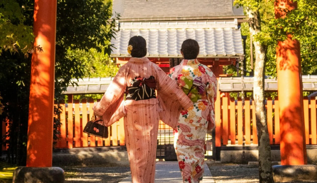 穿上和服,在古色古香的街景中拍照留念怎么样?