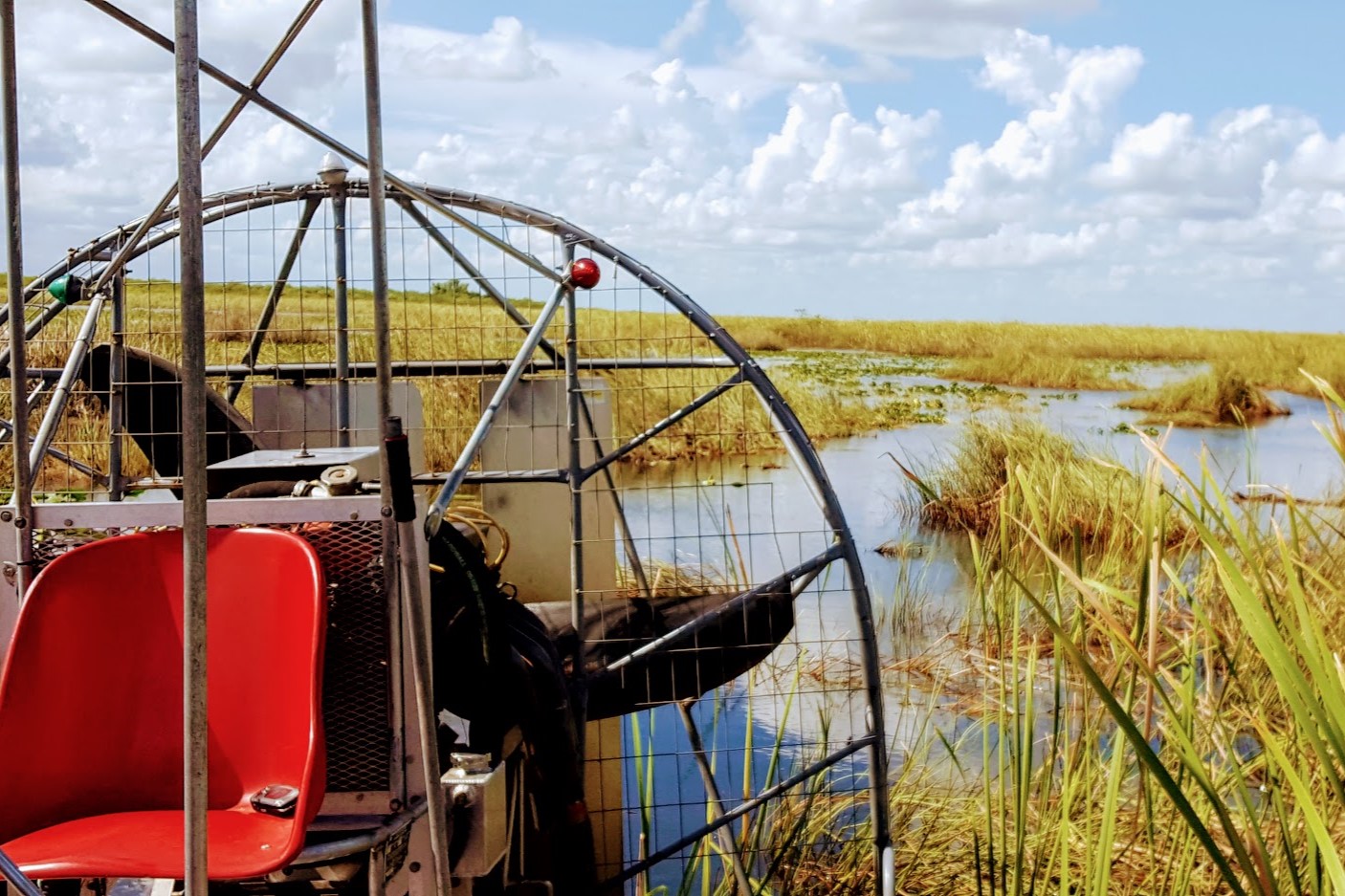 汽船在浅浅的沼泽上滑行,溅起波光粼粼的水花