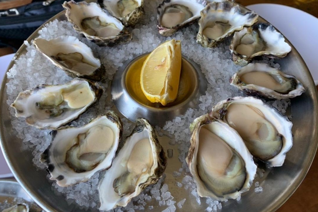 吞食新鲜捕获的牡蛎,并在旁边挤上柠檬汁,给人如此新鲜的感觉