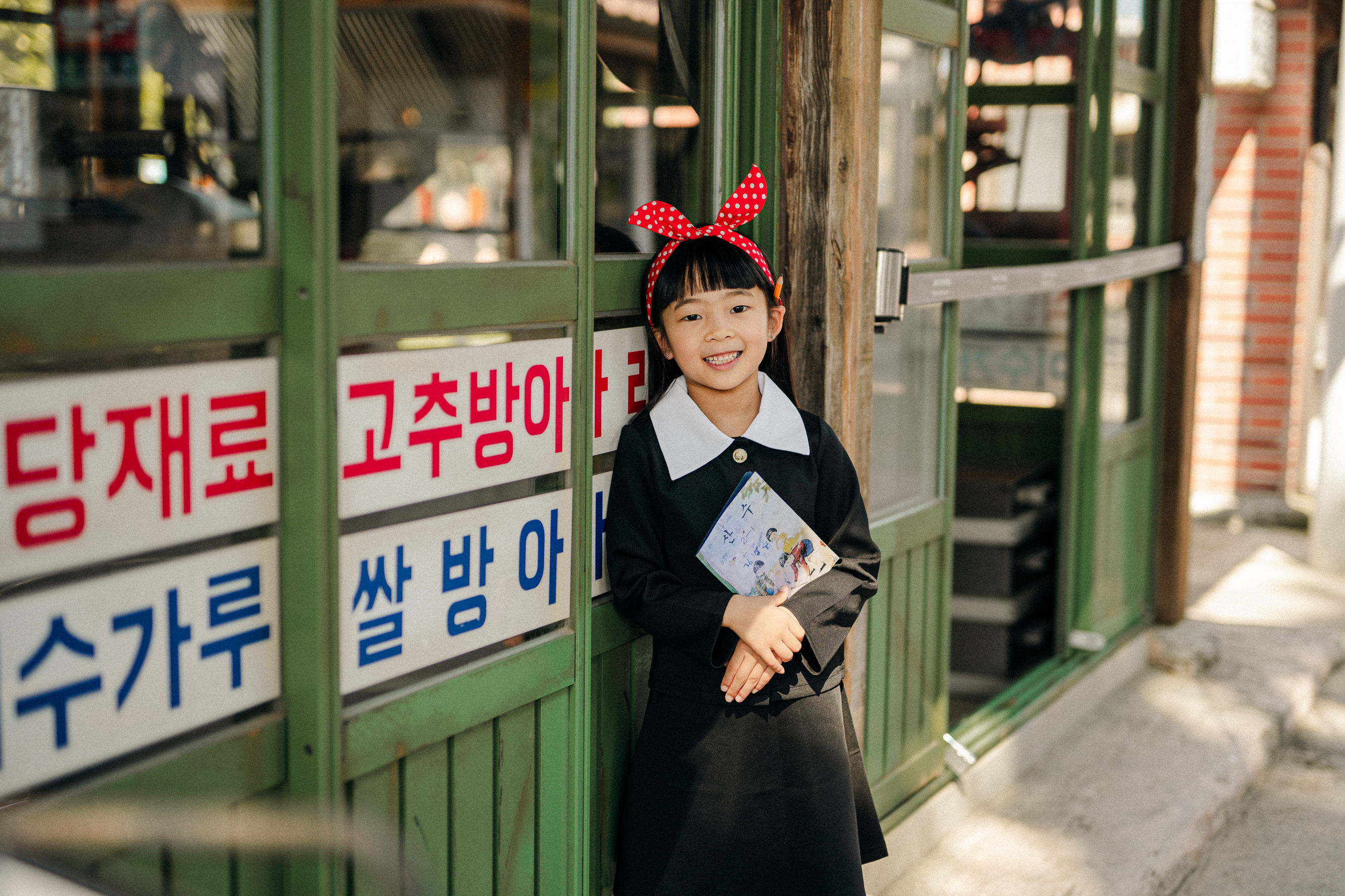 专门从事儿童摄影,但也欢迎成人参加此次摄影活动,摄影师将为您在韩国留下难忘的回忆!如果您预订此次摄影活动,我们将提供韩国老式校服。您可以在拍摄期间穿着它,也可以把它带回家!