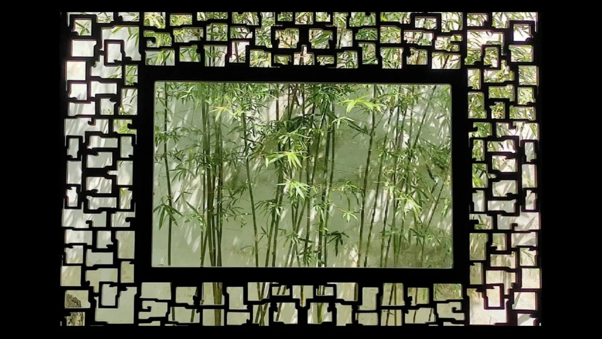 通过窗棂的独特造型,将窗外的自然景色框成一幅幅天然的画卷。图中可以看到窗棂的几何图案精美,窗外的树木、假山等景色透过窗棂呈现,形成虚实相生的美感