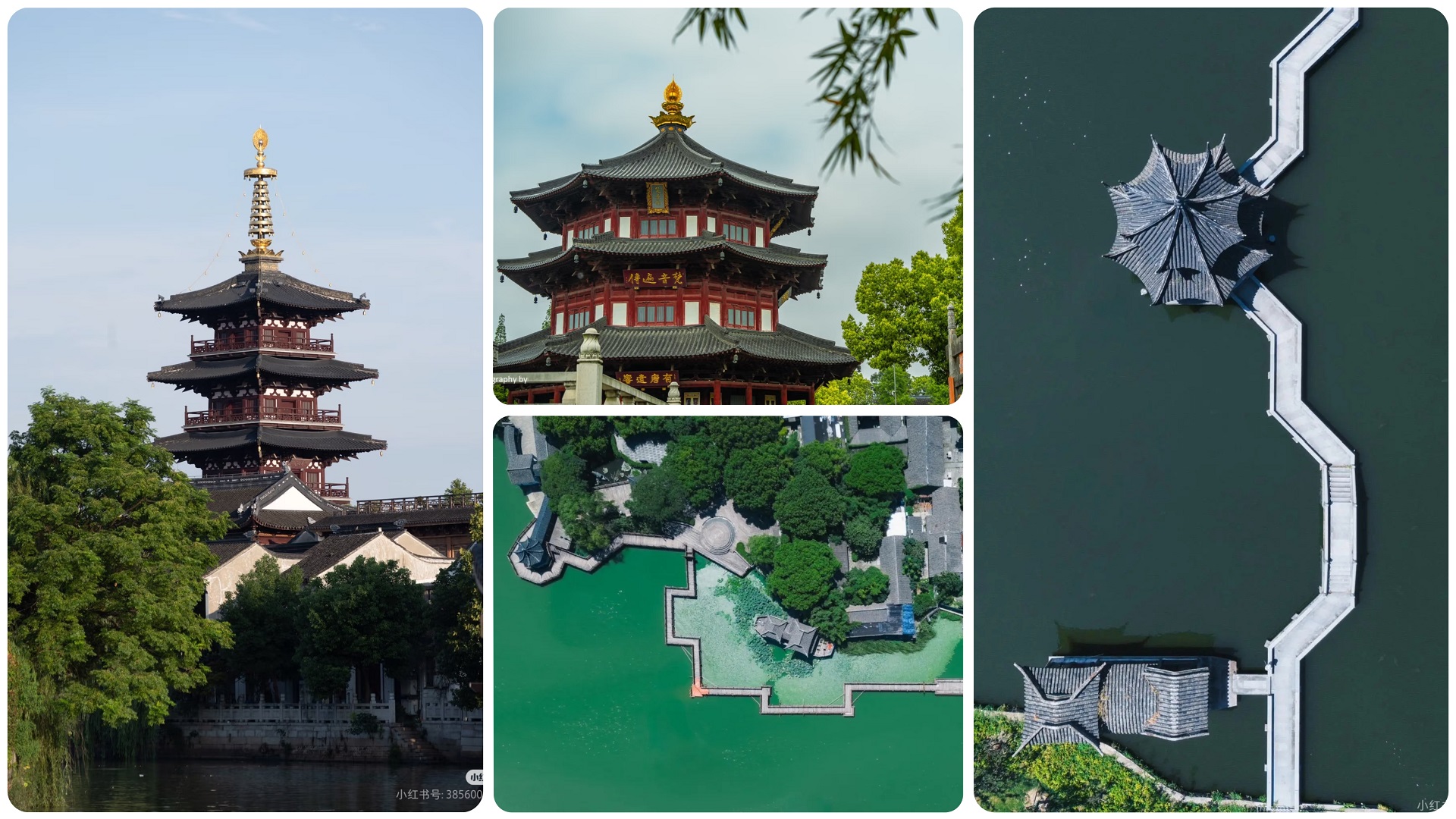 寒山寺是中国十大名寺之一。普明宝塔为仿唐木结构楼阁式塔,造型古朴庄重,飞檐翘角,塔刹金光闪耀