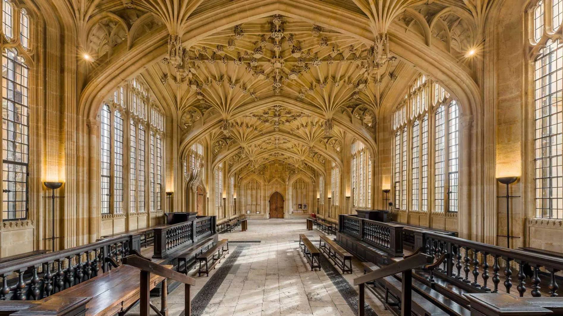 欣赏牛津神学院宏伟的扇形拱顶,历史与建筑完美融合