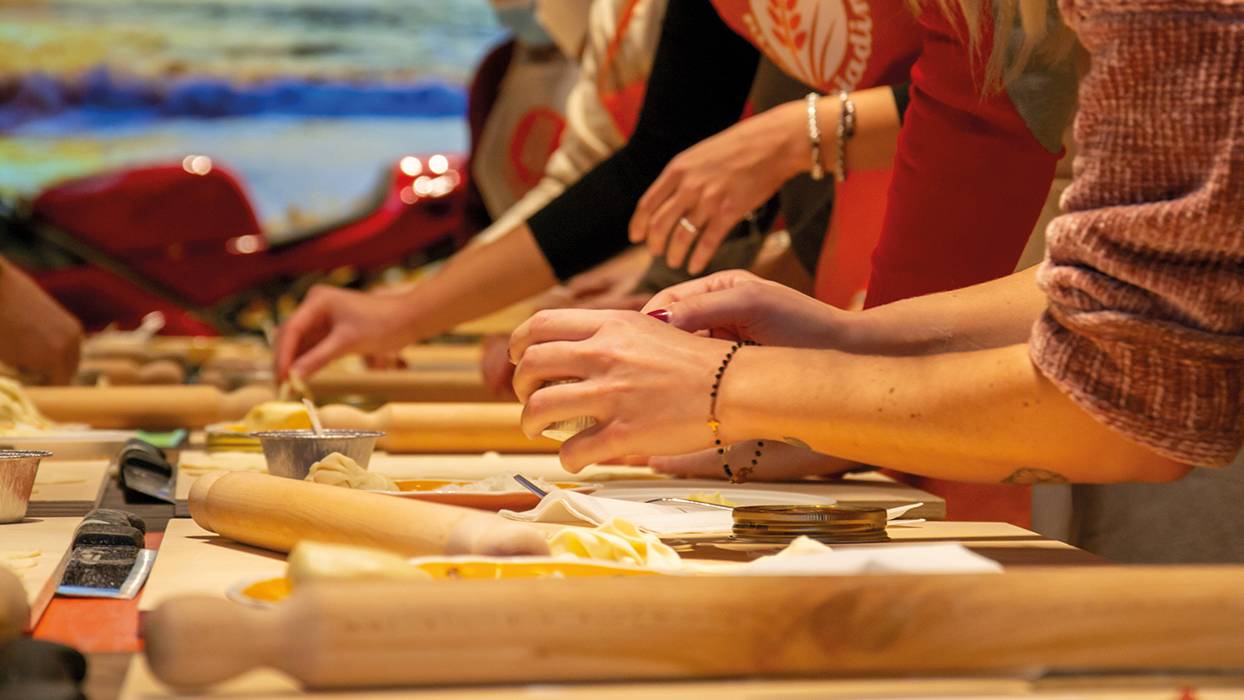皮亚迪纳体验将带您踏上一场互动之旅,了解这种标志性的罗马涅面包的历史。从其古老的新石器时代起源到如今的全球声誉,您将探索皮亚迪纳的文化和家庭根源,包括塑造它的农民传统。这次旅行向皮亚迪纳的传统致敬,特别向罗马涅对赛车运动的热爱致敬,庆祝其冠军。您还将亲眼目睹皮亚迪纳的制作过程并享受惊喜品尝。在魔法厅,小麦和面团等元素在费里尼的启发下神奇地栩栩如生,让每个皮亚迪纳都感觉像是炼金术。